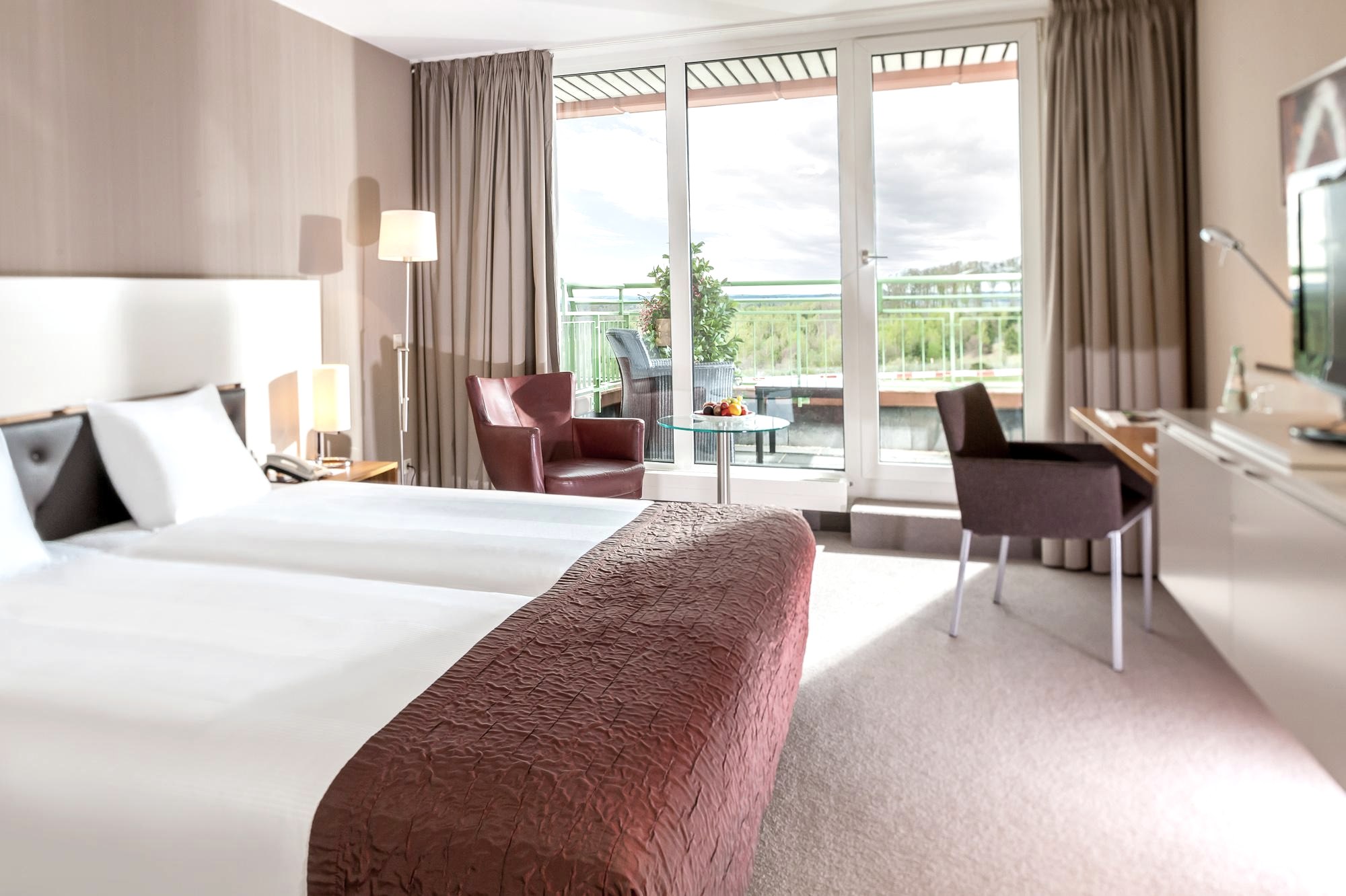 Geschmackvoll eingerichtet, bieten die 207 Zimmer einen grandiosen Ausblick auf die weltberühmte Rennstrecke oder auf die immergrüne Landschaft der Hocheifel.