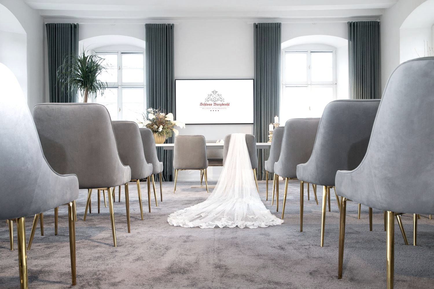 Kreatives Brainstorming, erfolgreiche Verhandlungen, gewinnbringende Schulungen und bereichernde Diskussionen - bei uns finden Sie den perfekten Rahmen, um Ihre Veranstaltungen unvergesslich zu machen. Mit unserer langjährigen Erfahrung und Leidenschaft für außergewöhnliche Veranstaltungen organisieren wir Ihre Tagungen, Konferenzen, Seminare und Meetings - ganz nach Ihren Wünschen und Bedürfnissen. Unsere einzigartigen Tagungsräume, sowohl im majestätischen Schloss als auch im charmanten historischen Schlosshof, bieten Ihnen eine Atmosphäre, die inspiriert und motiviert. Jeder Raum ist lichtdurchflutet und mit modernster Technik und hochwertigem Equipment ausgestattet, um Ihre Veranstaltung zu einem Erfolg zu machen. Selbstverständlich stellen wir Ihnen die übliche Tagungstechnik kostenlos zur Verfügung, damit Sie sich ganz auf Ihre Inhalte konzentrieren können. Für kleinere Meetings oder vertrauliche Gespräche bieten wir Ihnen einen ruhigen, stilvollen Raum in unserer Bibliothek - der ideale Ort für intensive Diskussionen oder persönliche Gespräche in entspannter Atmosphäre. Damit Ihre Veranstaltung ein voller Erfolg wird, stellen wir Ihnen gerne ein individuelles Paket zusammen, das auf Ihre Bedürfnisse zugeschnitten ist. Auch für Veranstaltungshighlights oder ein entspanntes Get-together nach Feierabend haben wir kreative Vorschläge - perfekt, um den Teamgeist zu stärken und den Tag ausklingen zu lassen. Dürfen wir Ihnen ein individuelles Angebot für Ihre Veranstaltung machen oder haben Sie weitere Fragen? Lassen Sie uns wissen, wie wir Sie bei der Planung Ihrer Tagung unterstützen können. Wir freuen uns darauf, Ihre Ideen in die Tat umzusetzen!