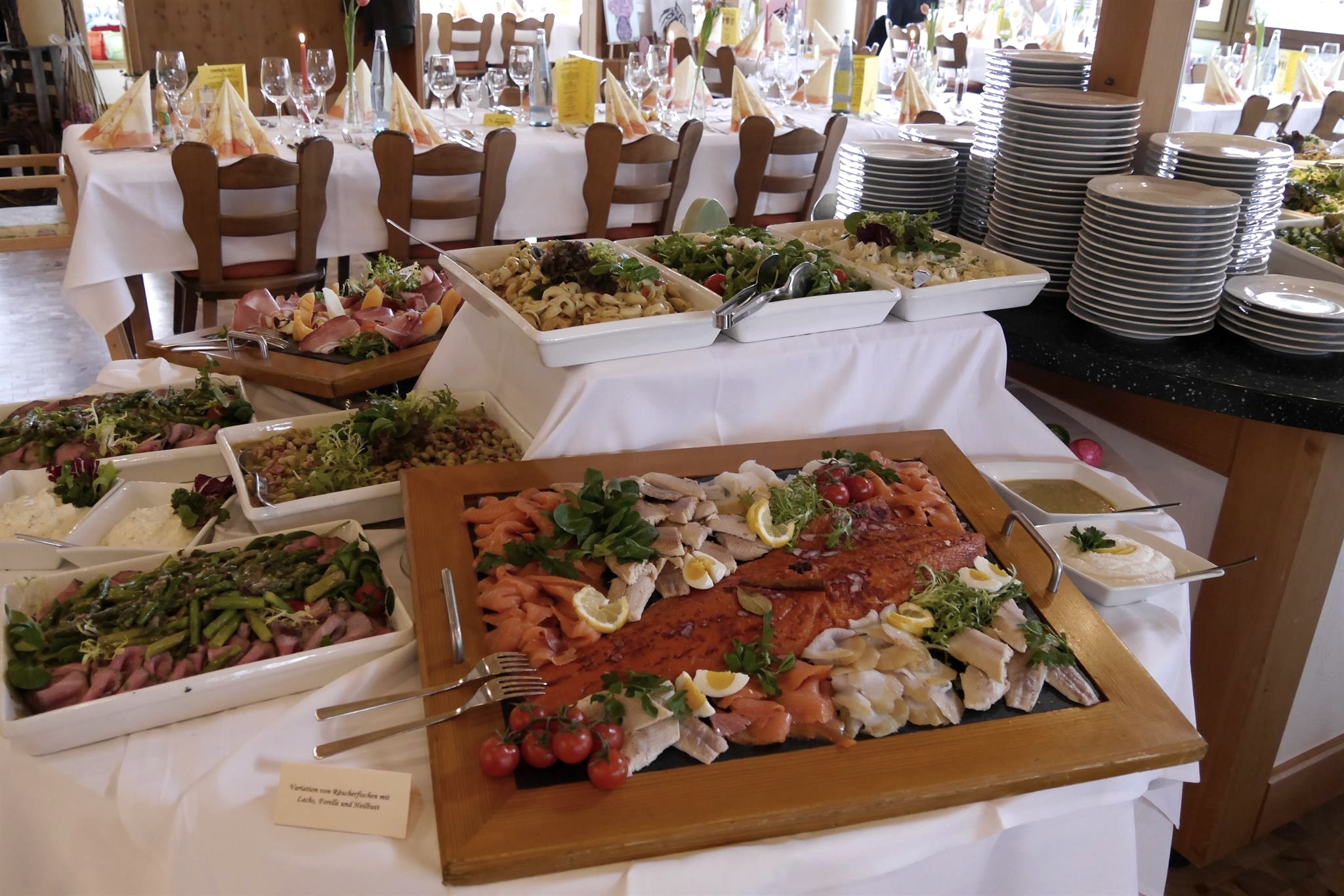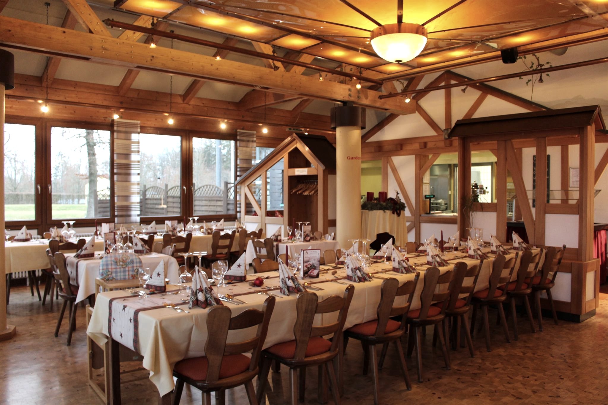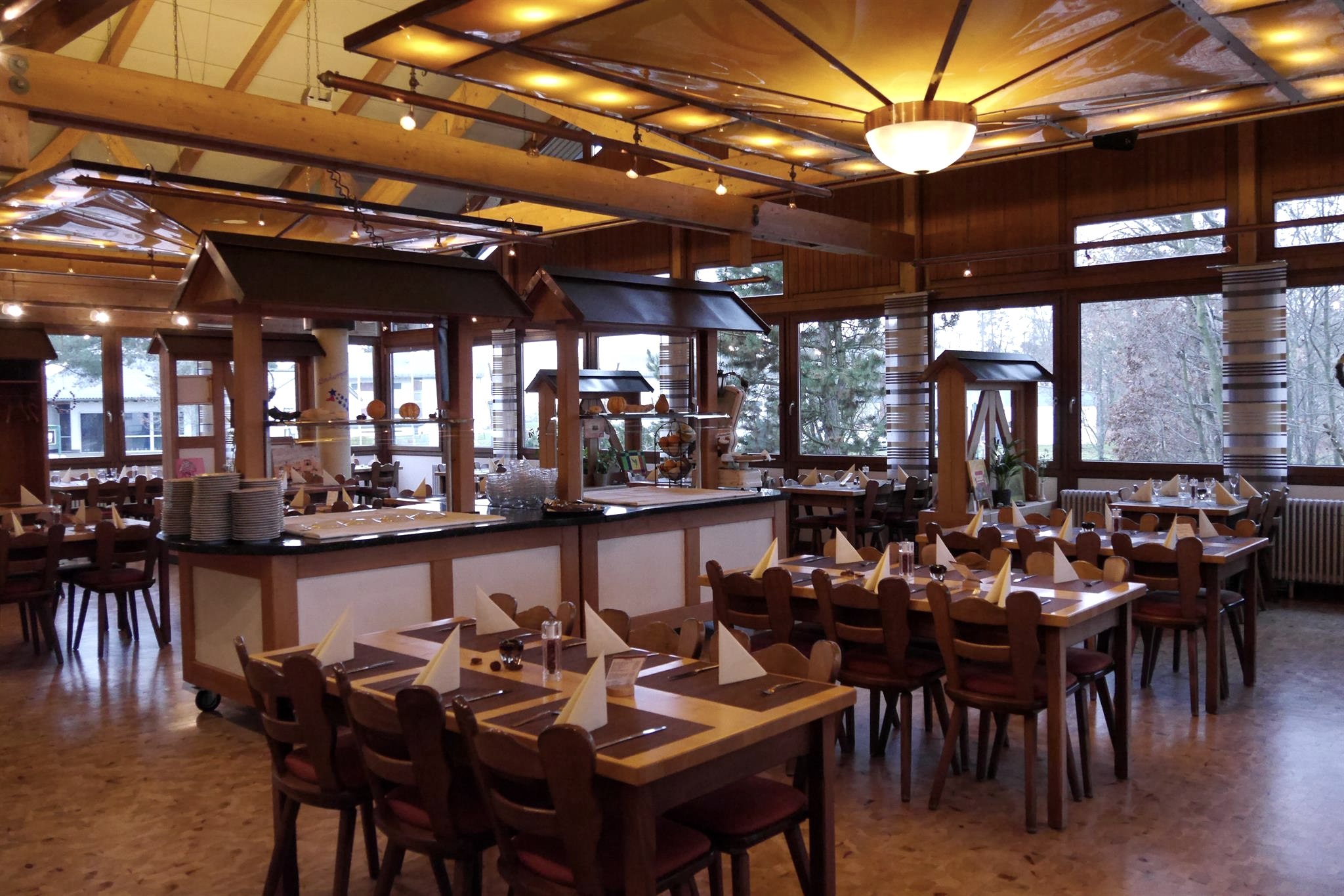 Hier erwartet dich ein reichhaltiges kulinarisches Erlebnis mit einem Schwerpunkt auf regionalen und saisonalen Speisen. Wir bieten täglich ein Frühstücksbuffet, ein Mittagsbuffet, Snacks und Waffeln am Nachmittag sowie ein Abendbuffet an.