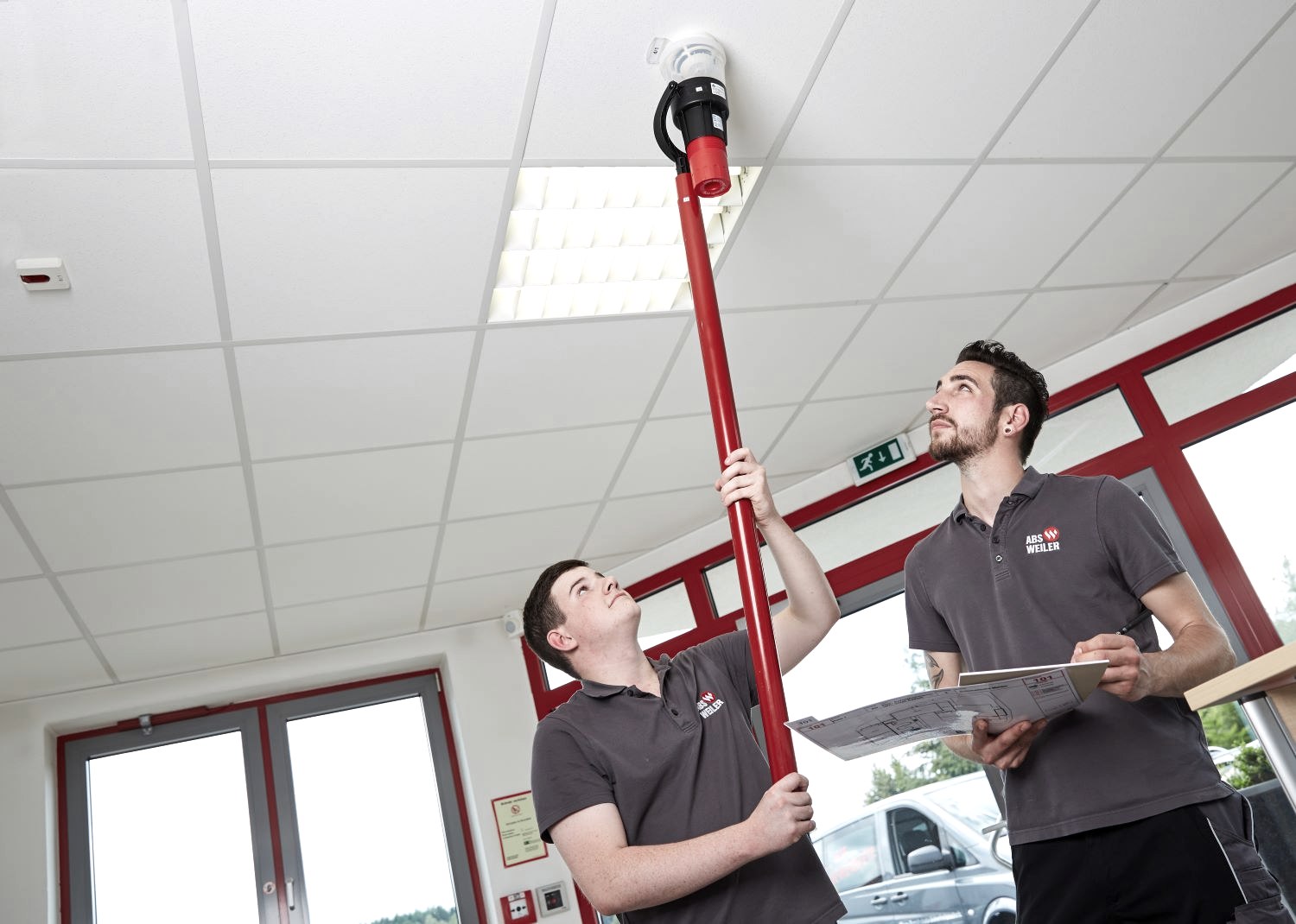Diesen Respekt erfahren die rund vierzig Techniker und Monteure nicht nur seitens der Auftraggeber, sondern vor allem im Betrieb selbst. „Wir binden unsere Mitarbeiter in die Projekte ein und schätzen ihre Meinung von der Umsetzung bis zur Problemlösung. Dies gilt auch für unsere Azubis. Diese werden von Anfang an ernst genommen und in die einzelnen Tätigkeiten integriert. Und natürlich bieten wir gute Karrieremöglichkeiten, Arbeitsplatzsicherheit in einer zukunftsorientierten, innovativen Branche und eine flache Hierarchie mit freundschaftlichem Betriebsklima.“ Doch für viele der Beschäftigten, die fast alle langjährig dem Unternehmen treu sind, kommt noch etwas anderes als Positivfaktor hinzu. Nicht selten sind sie ehrenamtlich in Feuerwehren oder im Technischen Hilfswerk engagiert und finden so eine perfekte Verbindung zwischen ihrem Berufsleben und ihrem privaten Hobby. Als Arbeitgeber unterstützt die Geschäftsführung von ABS Weiler diese Motivation ausdrücklich. Dabei geht es nicht nur um Praxiserfahrungen mit der Brandschutztechnik, die wertvoll ist. „Das Gefühl, etwas Sinnvolles und Nachhaltiges zum Schutz von Menschen und Materiellem zu tun, stärkt das Selbstbewusstsein und macht zufrieden.“