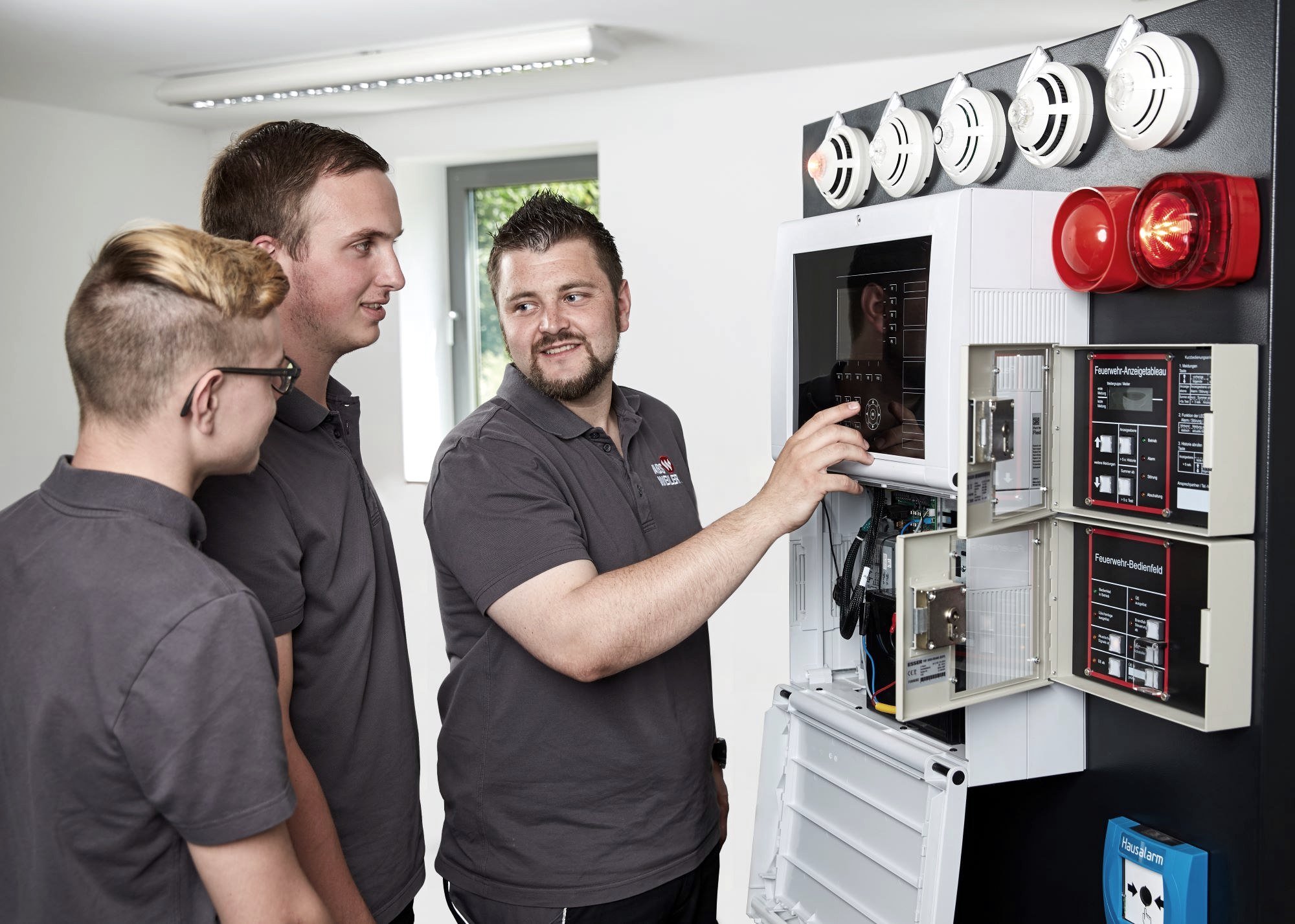 Die Branche bringt es mit sich, dass es niemals langweilig wird. Denn moderne Brand- und Einbruchschutzsysteme unterliegen generell einem sehr hohen Innovationsdruck. Darüber hinaus sind sie für jede Anwendung unterschiedlich, je nachdem, welches Schutzkonzept benötigt wird. „Es gibt keinen direkten Ausbildungsberuf für unsere Branche. Sondern wir bilden vor allem Elektroniker passgenau selbst aus und weiter, so dass sie ihre Aufgaben erfüllen können.“ So viel Abwechslung macht das Berufsfeld attraktiv. Nicht selten werben zufriedene Mitarbeiter neue Kollegen an. Der Umgang ist kollegial, es kann gern Eifeler Platt „geschwätzt“ werden, und auch Eifel-Rückkehrer oder Dual Studierende sind willkommen.