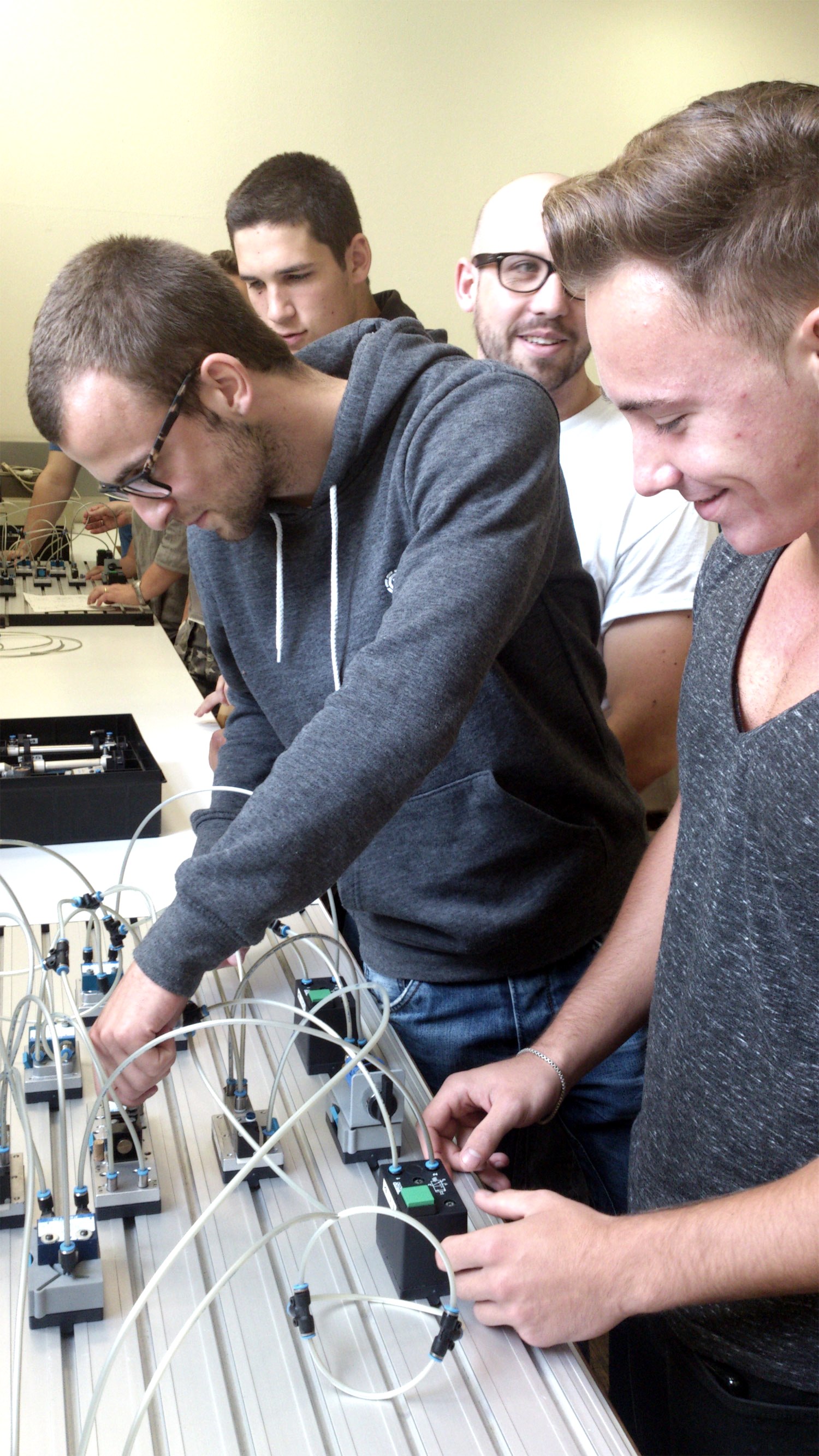 Im Gegensatz zu einem Dualen Studium sind die jungen Menschen Auszubildende in einem Unternehmen und keine Studenten und sie müssen sich noch nicht für den Weg Berufsausbildung und/oder Studium entscheiden. In einer 12- 18-monatigen Grundstufe werden ihnen wesentliche Teile einer dualen Ausbildung vermittelt. Schon in dieser Zeit kommen jedoch fachbezogene Studieninhalte an einer Hochschule dazu. Nach der Grundstufe steht dann die Entscheidung an: Die Auszubildenden fokussieren sich auf die duale Ausbildung und setzen diese fort, sie streben einen Doppelabschluss mit Ausbildungsabschluss und akademischen Bachelor-Abschluss an oder sie setzen das Studium fort und beenden dies mit einem Bachelor-Titel. „Viele Jugendliche machen zuerst eine Ausbildung und danach ein Studium. Dabei stellen sie fest, dass vieles von dem, was sie in der Berufsschule gelernt haben, im Studium wieder vorkommt. Für manche sind diese Doppelungen positiv, für die meisten aber unnötig. Das Besondere an SiA ist die stärkere Verzahnung von Ausbildung und Studium, so dass die Teilnehmerinnen und Teilnehmer keine Doppelungen an den Lernorten erleben. Natürlich ist der Bildungsweg auch insgesamt verkürzt, so dass man schneller in die berufliche Karriere einsteigen kann“, beschreibt Heike Schwarzbauer, Leiterin des Berufskollegs Jülich, die Vorteile des neuen Bildungsgangs.