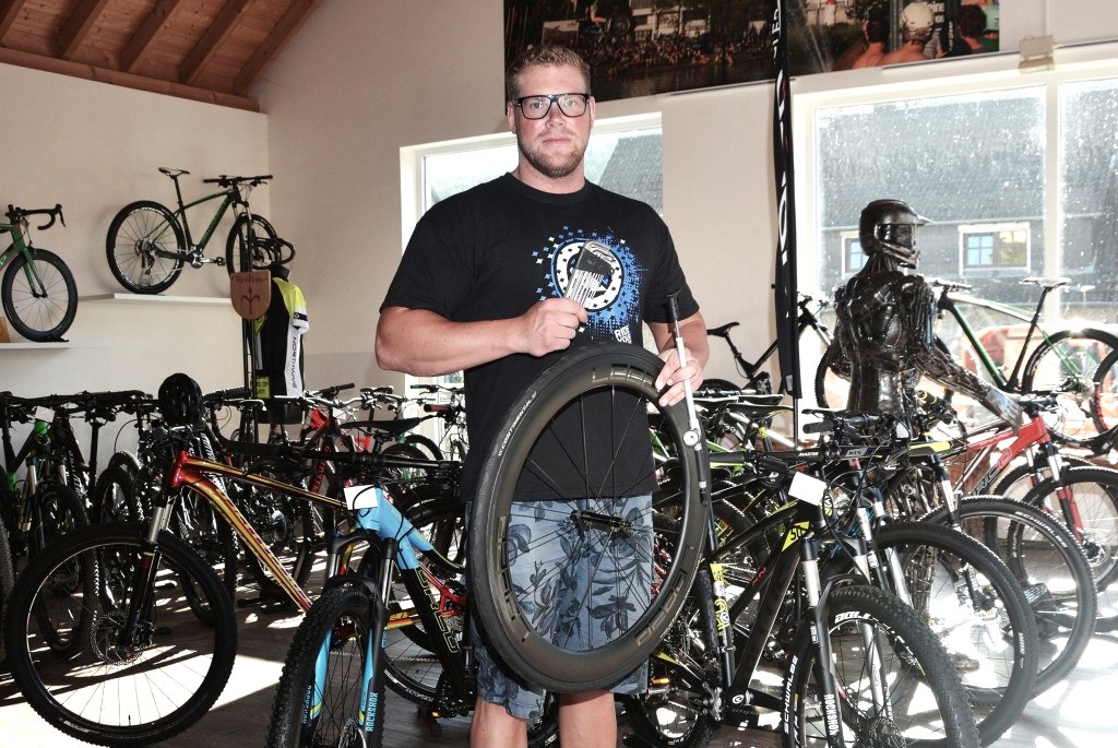 Schlauch wechseln, Kette ölen – fertig, Das war vorgestern. Heute geht es bei der High-End-Fahrradtechnik um cable inlets, ISCG-Tabs oder zero-washer-chasis. Wer da lieber nicht selbst Hand anlegen will, ist im Fahrradfachgeschäft von Guido Clemens in Birresborn bestens aufgehoben. Das ist schon lange ein – inzwischen ziemlich bekannter – Geheimtipp vor allem für Radrennfahrer und Mountainbiker, so Michael Schenten: „Wir sind sehr sportiv aufgestellt. Einmal im Jahr verkaufen wir auch ein Fahrrad mit drei Gängen, aber repariert wird hier natürlich alles. Dadurch habe ich auch viele Erfahrungen sammeln können.“
