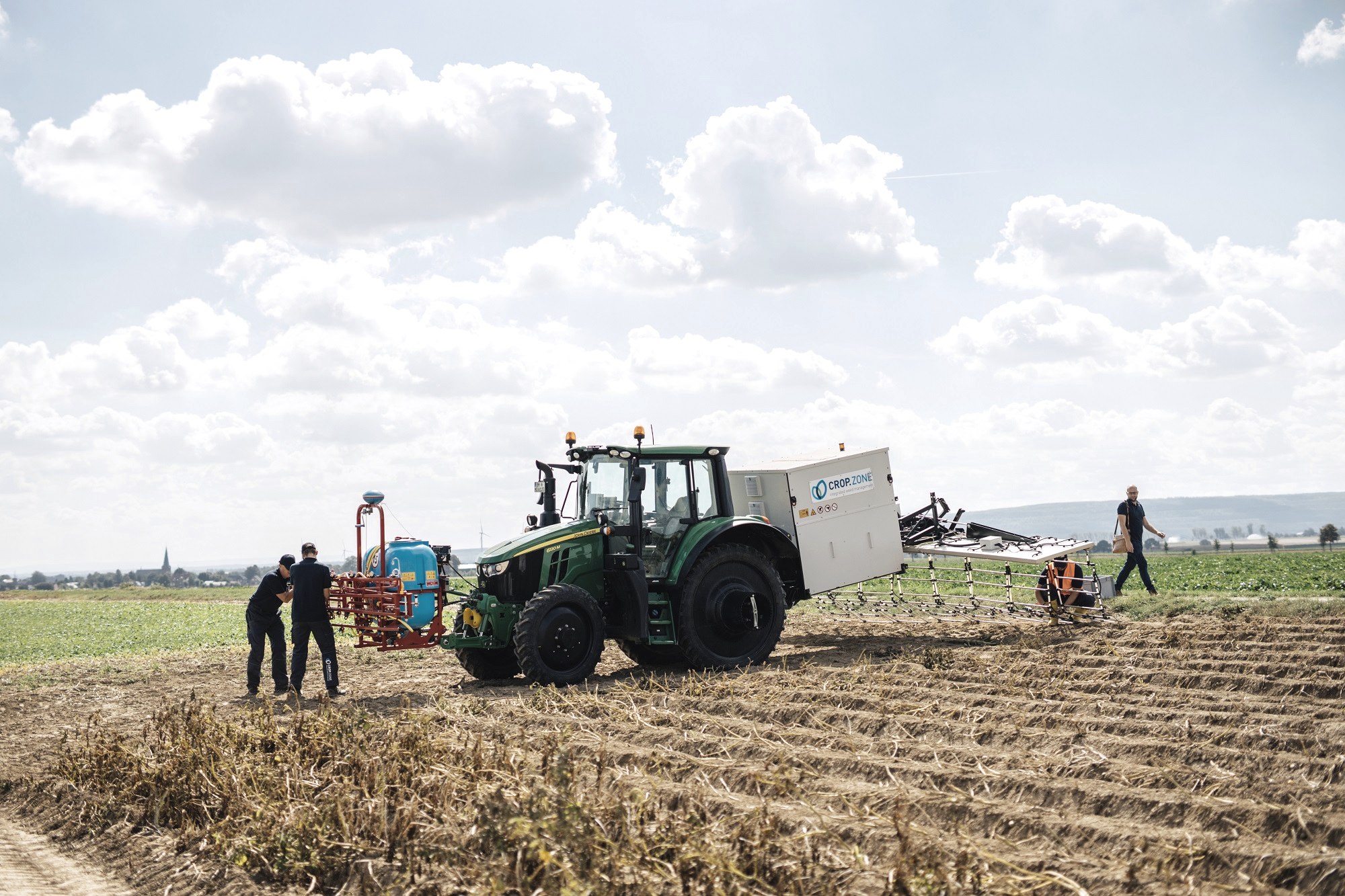 Der Standort in Aachen-Oberforstbach am Rand der Nordeifel ist für den Unternehmer ideal. Die Nähe zur Autobahn ist gegeben und die Verbindungen zur RWTH Aachen sind gut. Außerdem ist das Umland landwirtschaftlich geprägt und es gibt schon einige Kooperationen mit Landwirten aus der Region, die mit ihrem Wissen und ihren Erfahrungen dazu beitragen, das Verfahren von crop.zone zur Marktreife zu bringen. Im vergangenen Jahr standen Feldversuche im Mittelpunkt. In der Nähe des Firmensitzes können die Mitarbeiter direkt mit dem Traktor auf das Feld fahren und das Verfahren direkt testen, anpassen und Probleme erkennen und beseitigen. Denn hinter dem auf den ersten Blick einfachen Verfahren steckt viel Hightech, trotzdem muss die Technik robust für den Einsatz auf dem Feld sein.