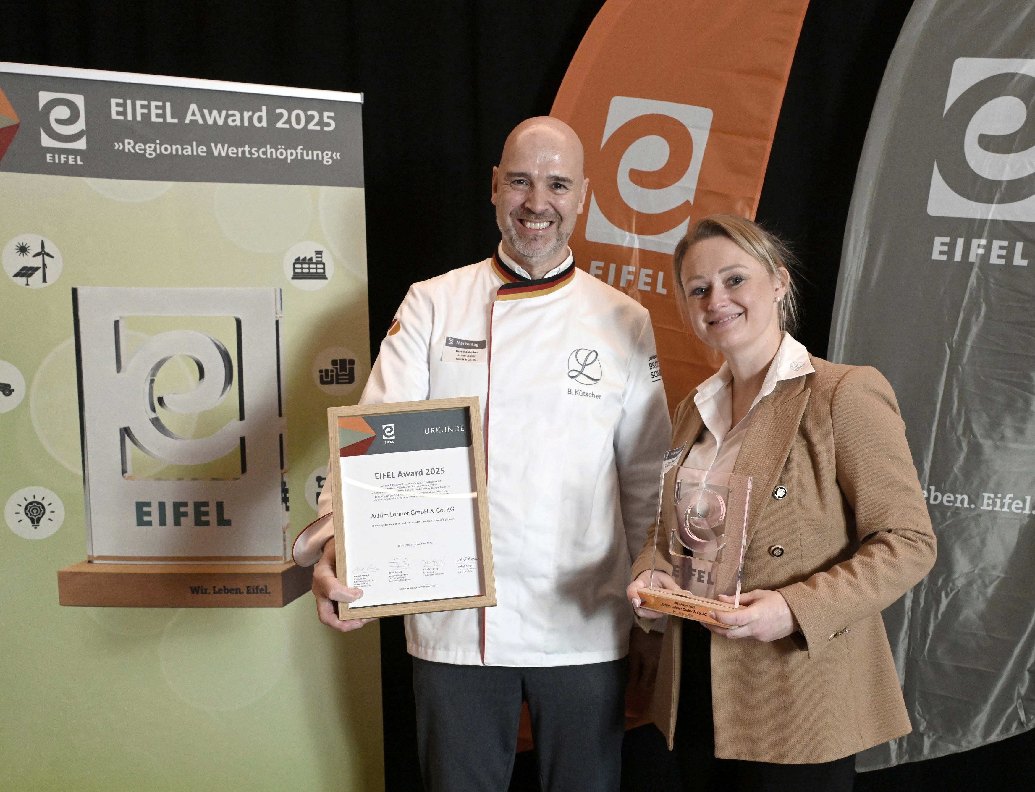 Seit mehr als hundert Jahren geht in der Bäckerei „Die Lohners“ in Polch der Ofen nicht aus. Aus dem kleinen Familienbetrieb ist ein Unternehmen mit rund 180 Filialen geworden. Die traditionelle Handwerksqualität mit originalen Rezepturen trifft bei aller Modernität der Herstellung auf eine hohe Identifikation mit der Region. So geht Stärkung der regionalen Wertschöpfung! Dafür wurde das Unternehmen mit rund 2600 Beschäftigten mit dem EIFEL Award 2025 ausgezeichnet.