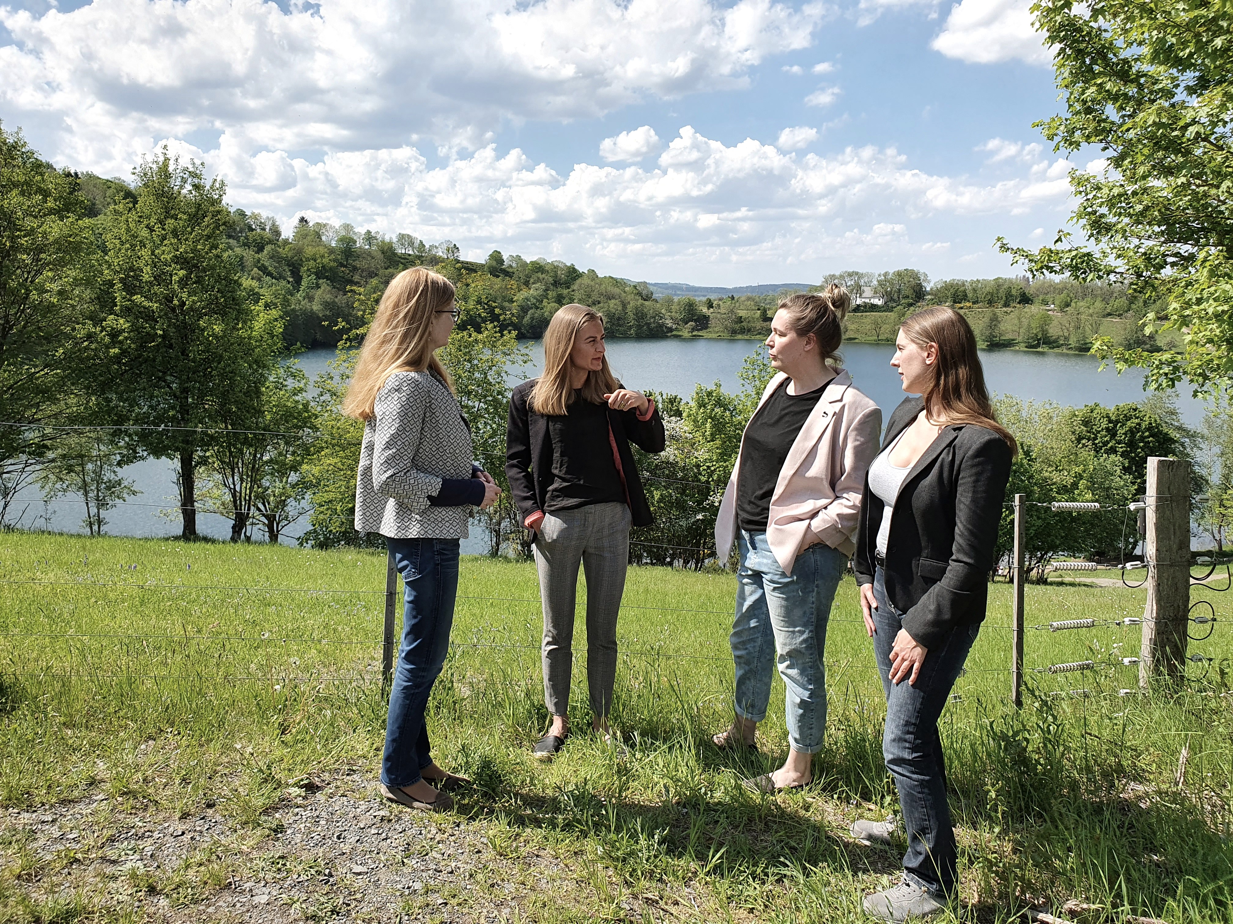 Als Frauen mit Berufserfahrung in mittelständischen Global Playern der Region und in der öffentlichen Verwaltung haben sie alles, was für ihre beiden Start-ups im Bereich Nachhaltigkeit hilfreich ist: Überzeugung und Haltung, Verständnis für Technik und ebenso für die Denkweise der Entscheiderinnen und Entscheider in den Behörden. Nicole Schmitz entschloss sich nach Stationen bei renommierten, international agierenden Hidden Champions in der Vulkaneifel, sich 2020 zunächst im Home-Office in Berndorf selbstständig zu machen. Sie startete 2023 mit ecoNfair („ökologisch, ökonomisch und fair“) in Gerolstein und wurde dabei unter anderem von der Wirtschaftsförderungsgesellschaft Vulkaneifel unterstützt: „Es ist die beste der Welt“, strahlt sie. Mut gaben ihr auch die „NeuUnternehmerInnen“-Treffen der WFG, über die sie ihre aus der Domstadt in die Eifel übergesiedelte Mitstreiterin Marina Schwarz kennen lernte. Die bezeichnet sich als „Prozess-Nerd“ mit Blick für die sozialen Faktoren, so dass „weiche“ und „harte“ Faktoren gleichermaßen berücksichtigt werden, wenn sie ein Unternehmen beraten oder unterstützen. So ist nun zusätzlich zum Einzelunternehmen ecoNfair, das den EIFEL Award bekam, die Teamgründung „GRÜNschaffen“ entstanden. Beide Aktivitäten sollen gleichermaßen wachsen und nebeneinander bestehen. Beide Frauen sind gern Einzelunternehmerinnen, schätzen aber auch die Vorteile, die ein gemeinsames Business mit sich bringt – denn „gemeinsam schafft man mehr als allein“.