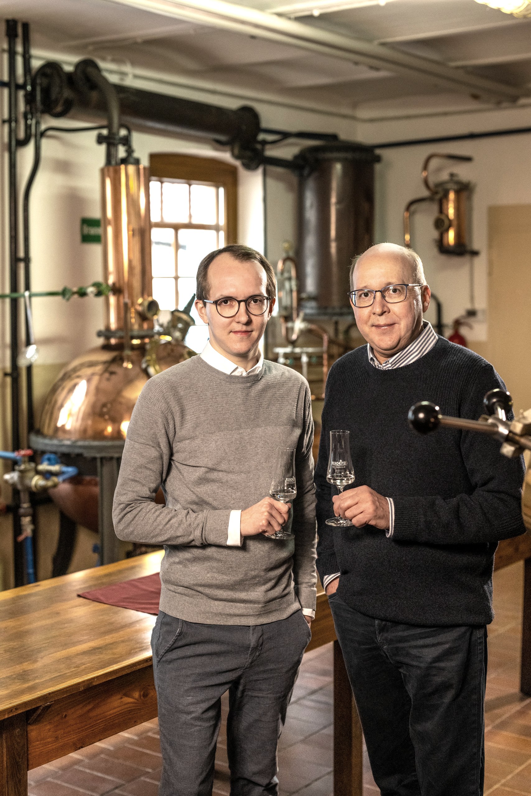 Heute betreibt sein Enkel Peter Josef Schütz gemeinsam mit seiner Frau und 3 Angestellten die Brennerei. Die Landwirtschaft ist längst aufgegeben. Das ermöglicht es dem leidenschaftlichen Destillateur, sich voll und ganz auf die Herstellung feiner Spirituosen zu konzentrieren. Auch wenn er einen besonderen Geschmacks- und Geruchssinn in die Wiege gelegt bekam, so wollte er doch das Genusshandwerk von der Pike auf erlernen und absolvierte sowohl eine Ausbildung zum Destillateur als auch zum Brenner. Viel Wissen und Erfahrung sind notwendig, um eine harmonische Komposition aus Säure, Aussehen, Geruch und Geschmack zu entwickeln. Die Rezepturen des Eifelgeistes stammen noch vom Großvater – inklusive des Geheimnisses um die hochwertigsten Kräuterqualitäten. Viele weitere Spirituosen-Spezialitäten hat Peter Josef Schütz im laufe der Jahre selbst entwickelt. „Es ist manchmal ein langjähriger Prozess von der Idee bis zum finalen Produkt, da muss man sich Schritt für Schritt an eine neue geschmackliche Komposition herantasten“, verrät er über die Kunst seines Handwerkes. Solche Ideen entstehen mal in seinem Kopf, mal kommen die Anregungen von Kunden, für die er unter fremdem Label Produkte entwickelt. Aktuell sind dies verschiedene Gin-Spezialitäten. Hiermit kennt sich Familie Schütz aus, schließlich produzieren sie solche auf Wachholder angesetzten Spirituosen schon seit nahezu 100 Jahren.
