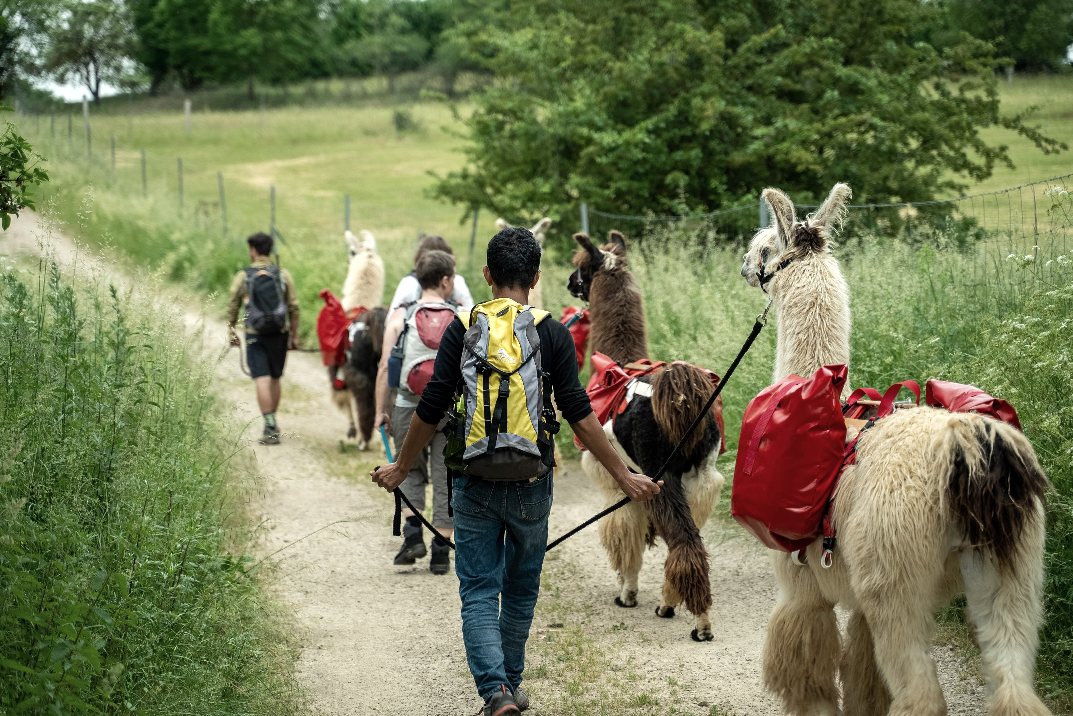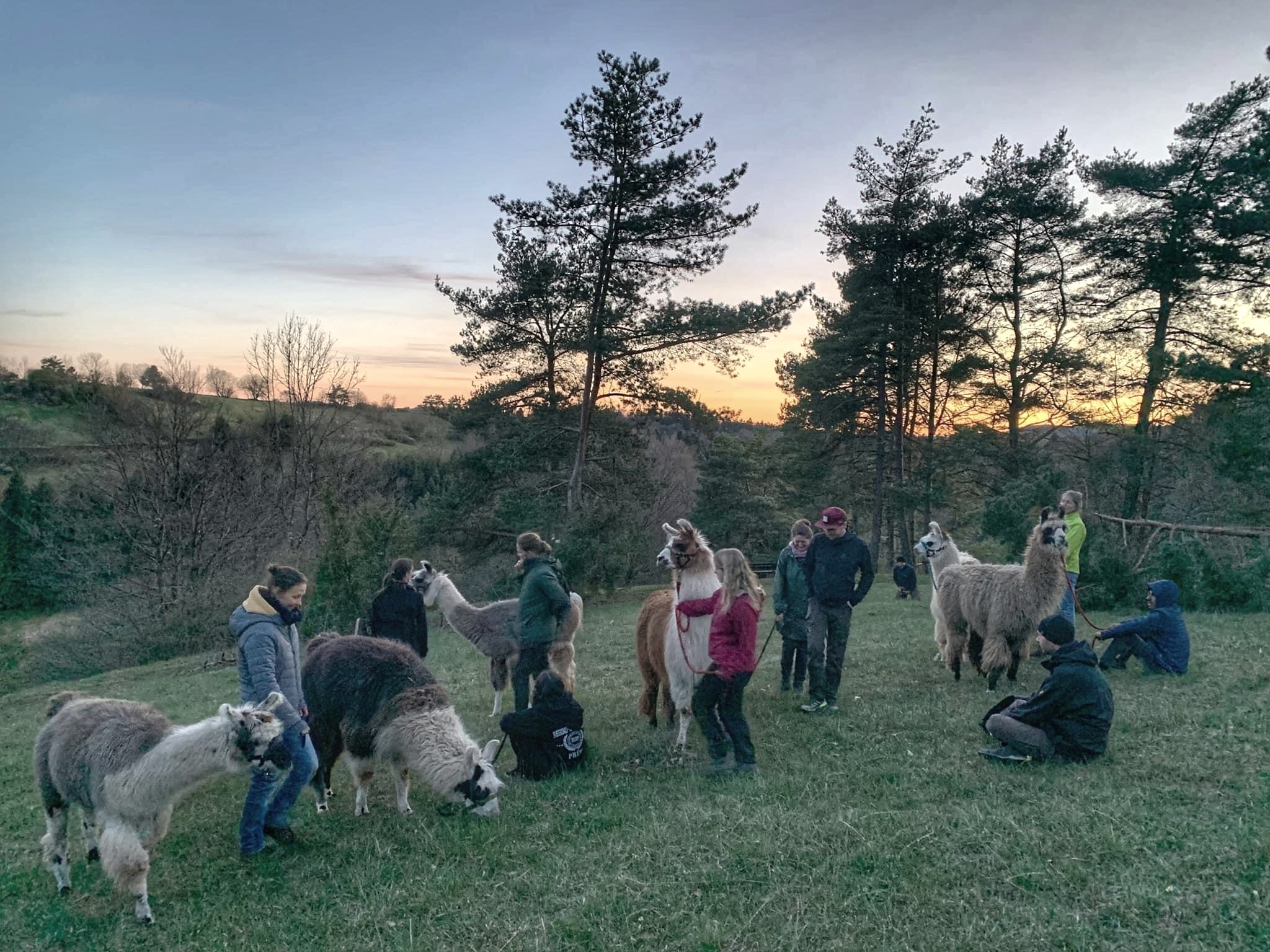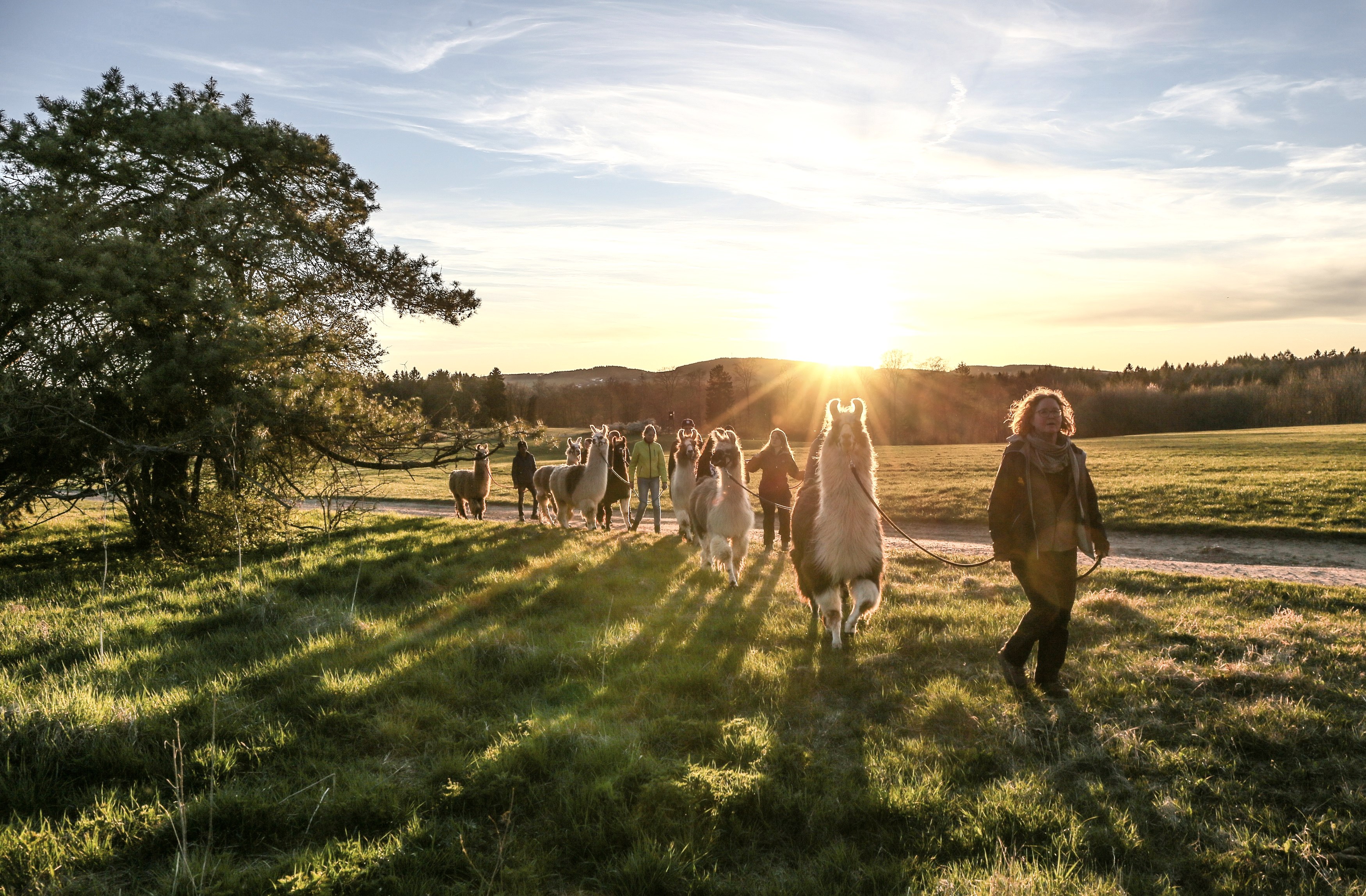 Damit war die Idee für die eifelnomaden geboren: gemächlich unterwegs sein, diesmal nicht mit Kamelen oder Eseln, sondern mit Lamas. Die stammen aus den südamerikanischen Anden. Als Gebirgstiere fühlen sie sich in der eher kühlen Eifel sehr wohl. Lamas sind kooperativ, geduldig und gelassen. Aber sie erwarten von den Menschen auch Respekt. Sie entscheiden selbst, wann und mit wem sie Nähe zulassen. Bereits im September 2020 zogen die ersten sechs Lamas ein. Inzwischen gehören 14 Lamas und zwei Alpakas zum tierischen Team der eifelnomaden. Das Portfolio der eifelnomaden umfasst neben mehrtägigen Trekkings etwa zwanzig unterschiedliche Wanderangebote mit einer Dauer von zwei bis acht Stunden für Einzelwanderer, Familien und Paare. Events wie Betriebsausflüge, Incentives, Fotoshootings, Kindergeburtstage oder Junggesellinnenabschiede ergänzen das Angebot. „Die Events gestalten wir nach den individuellen Wünschen und Anforderungen der Auftraggeber. Auch hier kommt mir meine langjährige Erfahrung aus der Touristik sehr zugute”, sagt Julietta Baums.