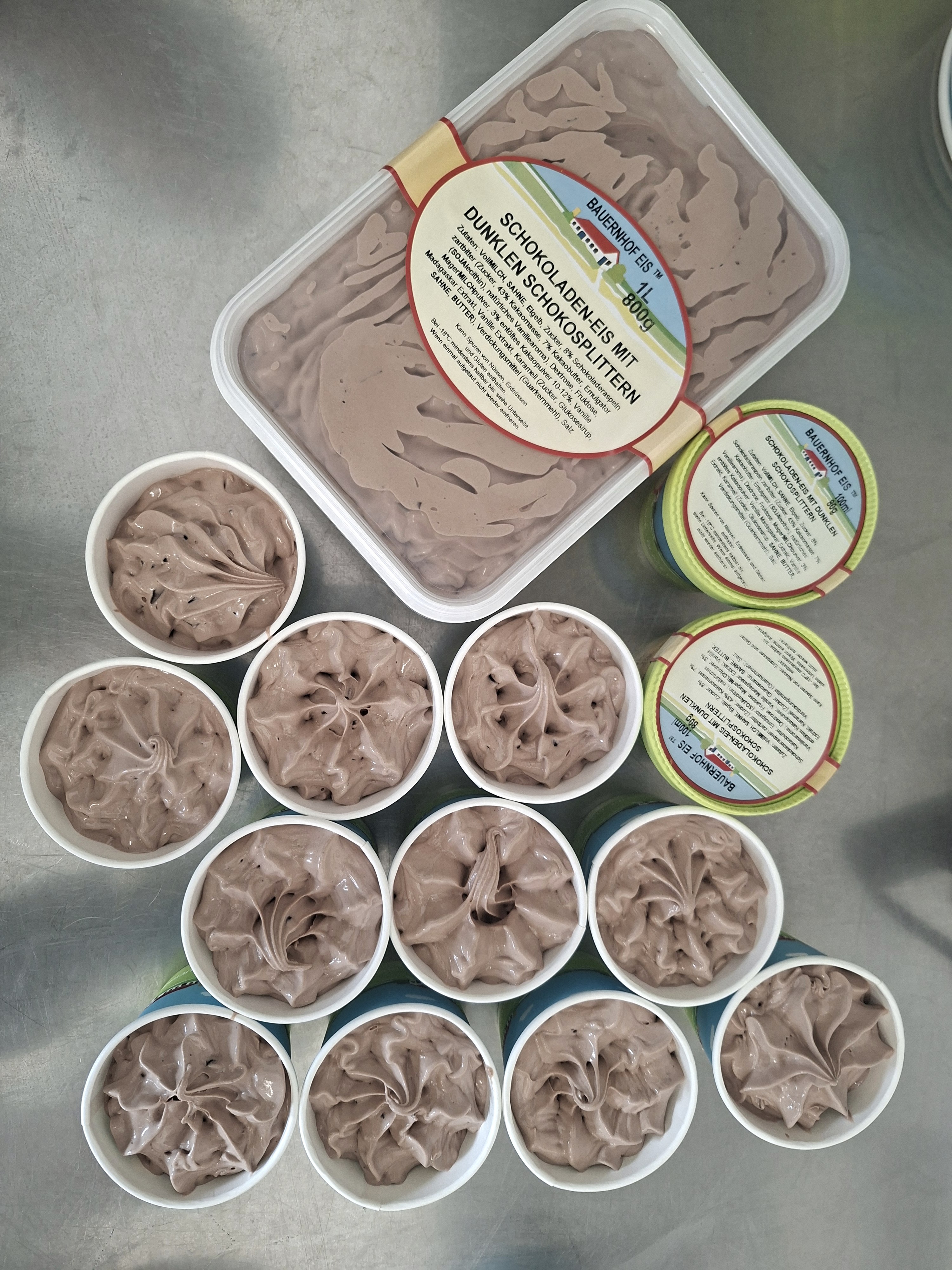 Heute stammt die Milch für das Bauerneis von den eigenen Kühen. Verkauft wird überwiegend in der Region – an Hofläden und Gastronomiebetriebe. So bleibt die Wertschöpfung in der Eifel, vom Rohstoff bis zum fertigen Produkt.