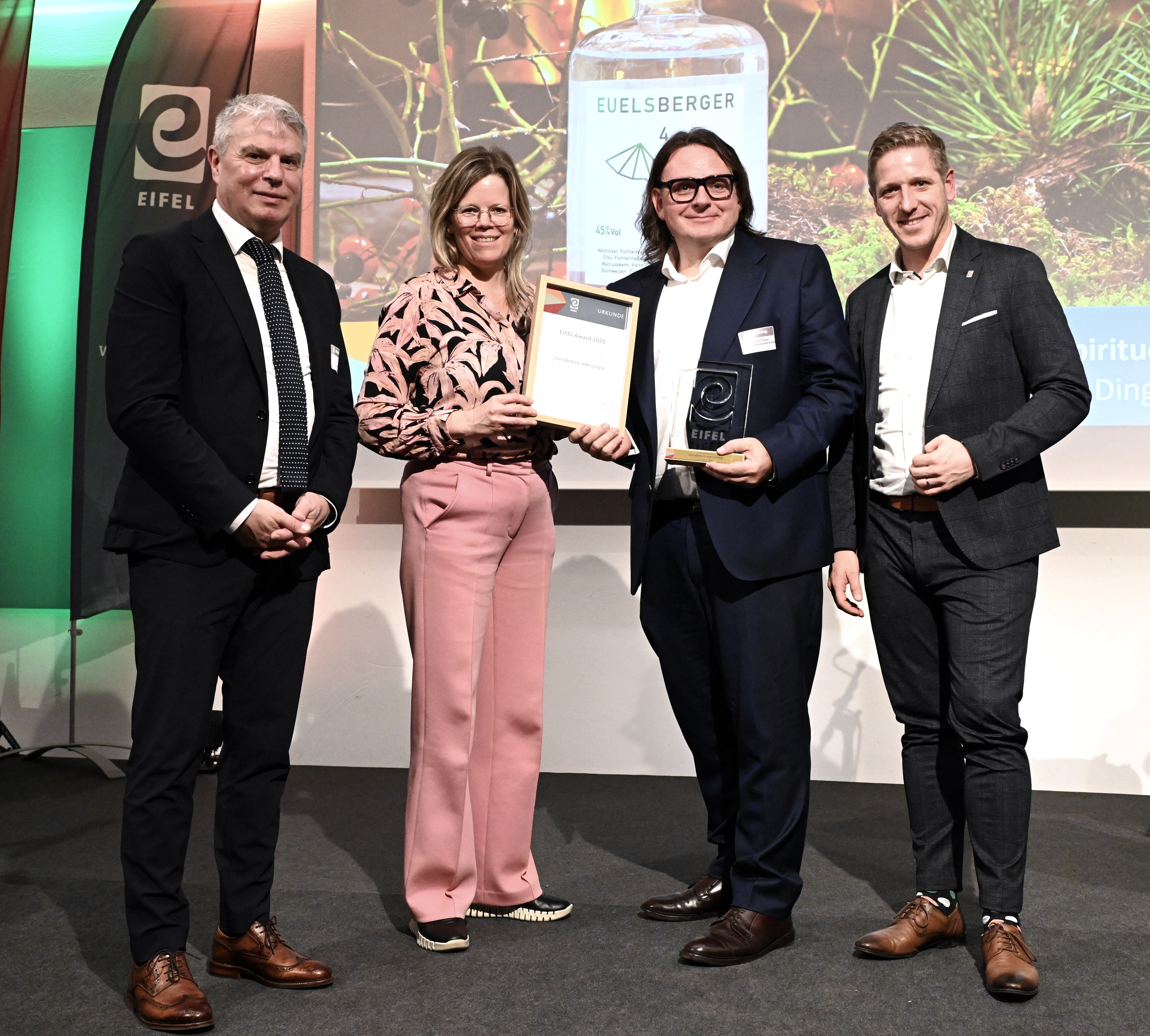 Von Berlin zum Hof der Familie in die Südeifel – das ist der Weg von Stephan Thomé, den er mit seiner Brennerei Euelsberger Spirituosen ging. Sein Euelsberger Eifel No. 4 schafft es mit regionalen Botanicals als Zutat regelmäßig in die weltweite Top-Liga der Gins. Sein Erfolg und seine Philosophie bescherten Thomé auch den EIFEL Award 2025 für regionale Wertschöpfung.