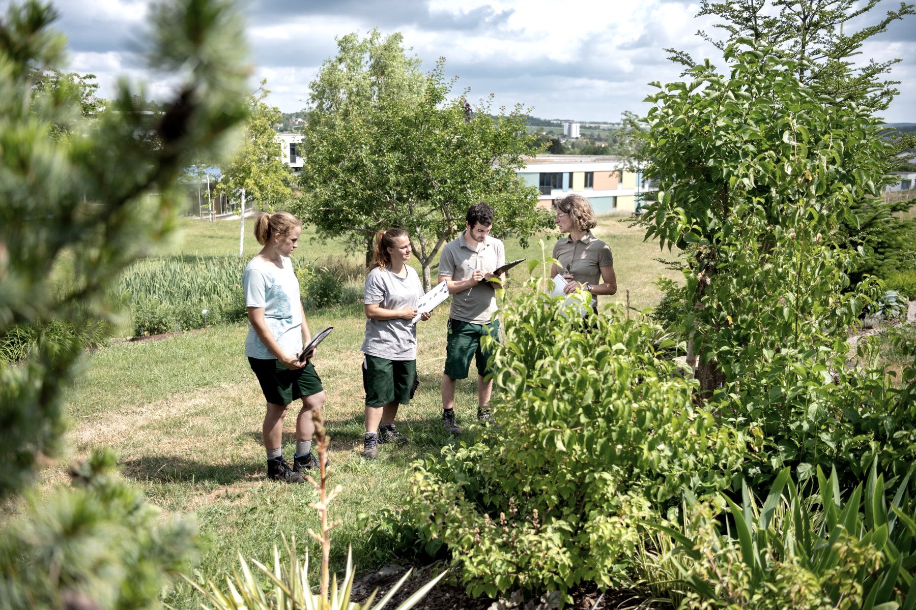 Das großzügige Gelände ist umringt von viel Grün, idyllisch gestaltet mit prachtvollen Beeten und einem großen Fischteich. Hier schmiegen sich Schule, Ausbildungsgebäude, Wohnhäuser, Sporthalle und Außen-Aufenthaltsflächen harmonisch in die Landschaft. Alles ist mit allem verwoben – sowohl auf dem Campus als auch im Ausbildungs- und Betreuungskonzept des Bildungswerkes. Die Schülerinnen und Schüler leben in Wohn