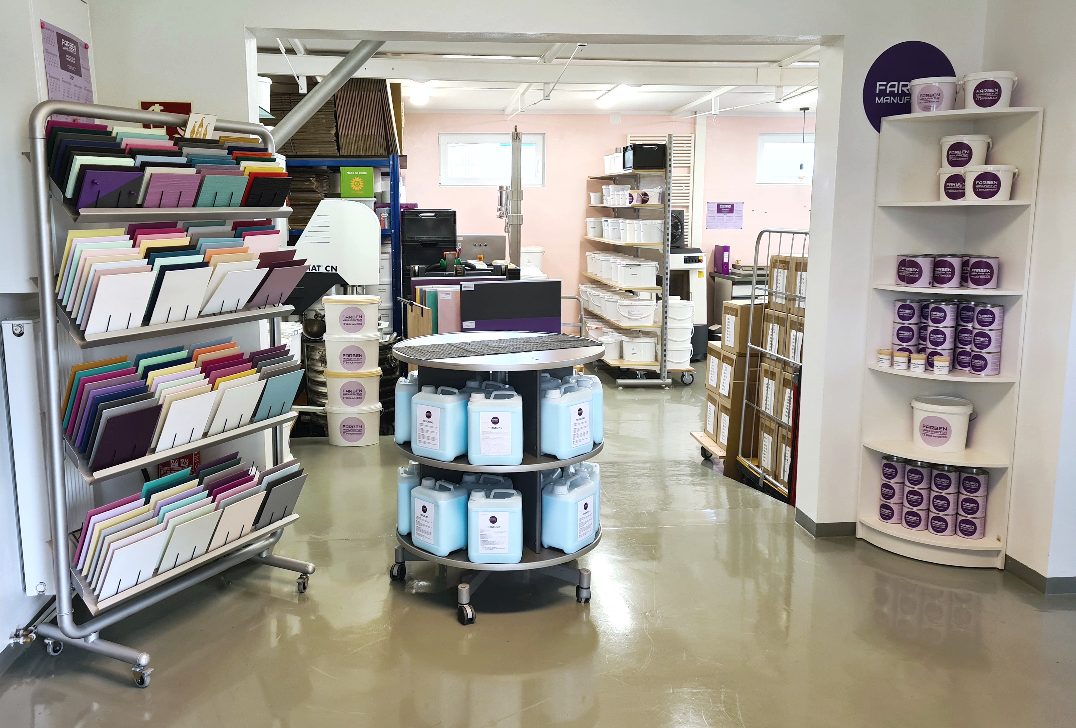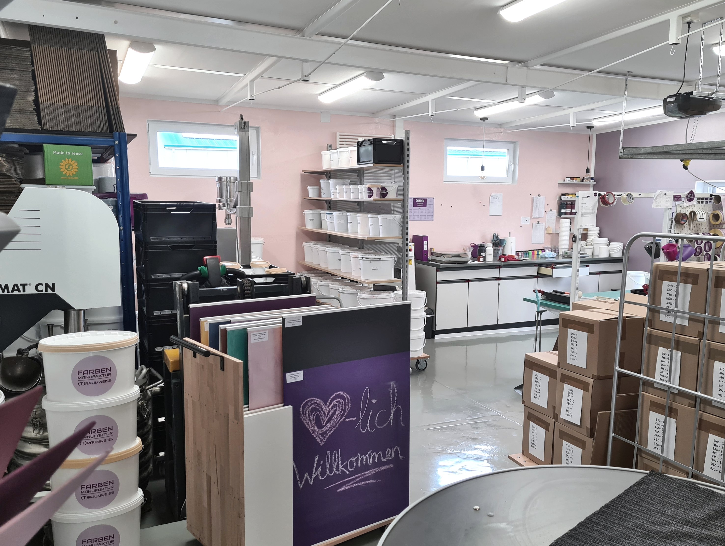Was ursprünglich als reines Dienstleistungsangebot gedacht war, hat sich zu einer kleinen, feinen Manufaktur entwickelt, in der jeder Kunde sein individuelles Farbrezept bekommt. „Ich habe unseren Webshop so entwickelt, dass er selbsterklärend ist“, sagt Halfmann und hat damit großen Erfolg, besonders bei Frauen. Ob das Wohnzimmer einen neuen Anstrich erhalten soll, die Außenfassade, die Garage oder ob Gartenmöbel in neuem Glanz erstrahlen sollen – bei der Farben Manufaktur erfüllen die Mitarbeitenden die Wünsche der Kunden. Die benötigten Mengen werden genau berechnet, um zu vermeiden, dass Farbe im Sondermüll entsorgt werden muss.