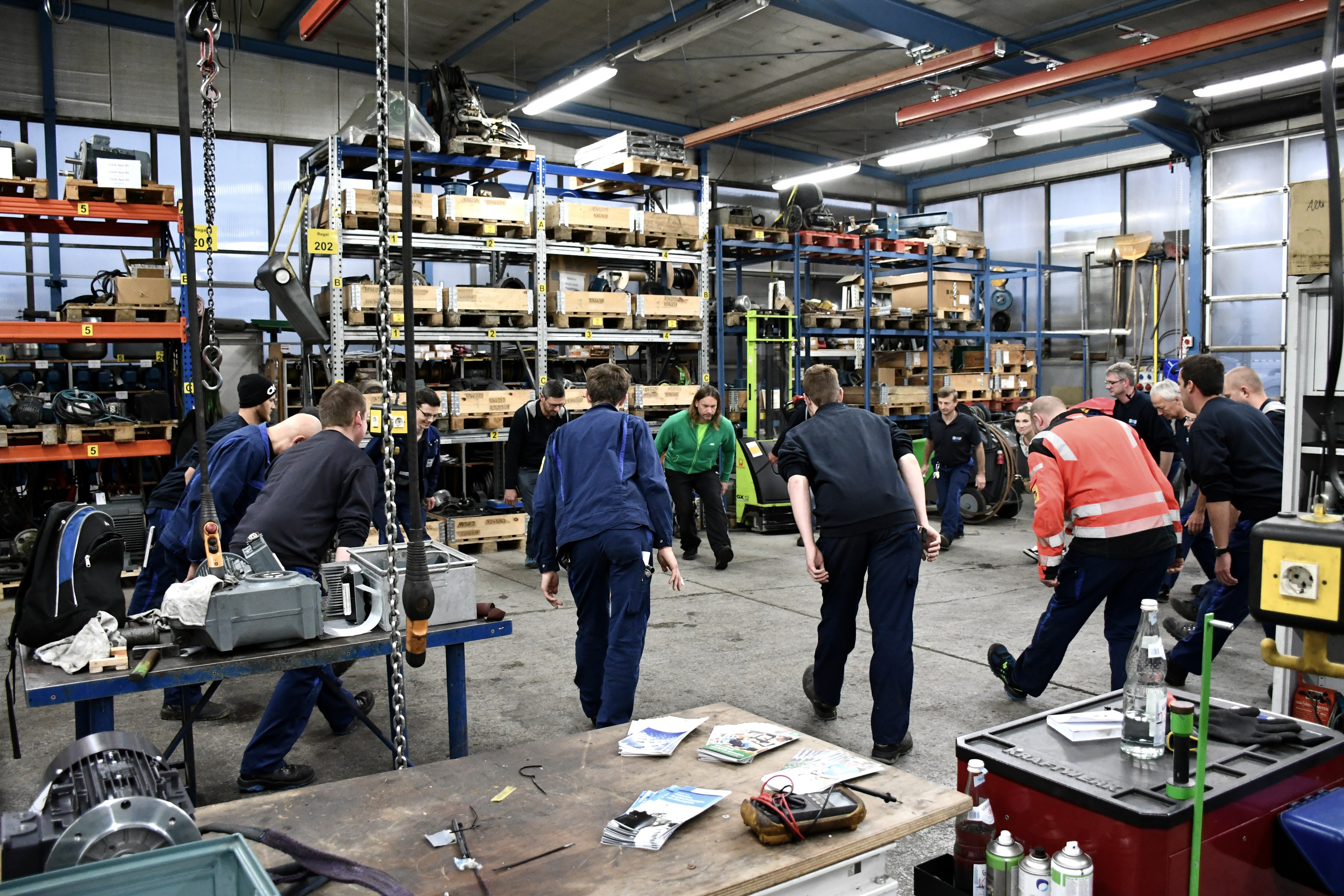 Geschäftsführer und Firmeninhaber Andreas Fuhrmann hat es in seinem Team fast durchweg mit kernigen Männern zu tun, die sich nicht scheuen, zum Beispiel Krananlagen über Kopf zu reparieren, bei denen es buchstäblich heiß hergeht: „Für unsere Auftraggeber ist Zeit echtes Geld, da muss man auch im laufenden Betrieb ran und hat es dann schon mal mit mehr als sechzig Grad unter der Hallendecke zu tun.“ Unbequeme Körperhaltungen kommen als Belastungsfaktor nicht selten hinzu. Kurzum: Die Arbeit im Servicebereich vor Ort bei Kunden kann durchaus herausfordernd sein. Andererseits neigen gerade starke Kerle, wie einschlägige Statistiken offenbaren, nicht unbedingt dazu, sich um ihre Gesundheit große Gedanken zu machen. Umso mehr tut dies ihr Chef. „Für uns ist Betriebliches Gesundheitsmanagement kein netter Luxus, sondern eine Notwendigkeit. Fast alle machen mit, und die Vorträge oder Checks finden während der Arbeitszeit statt.“