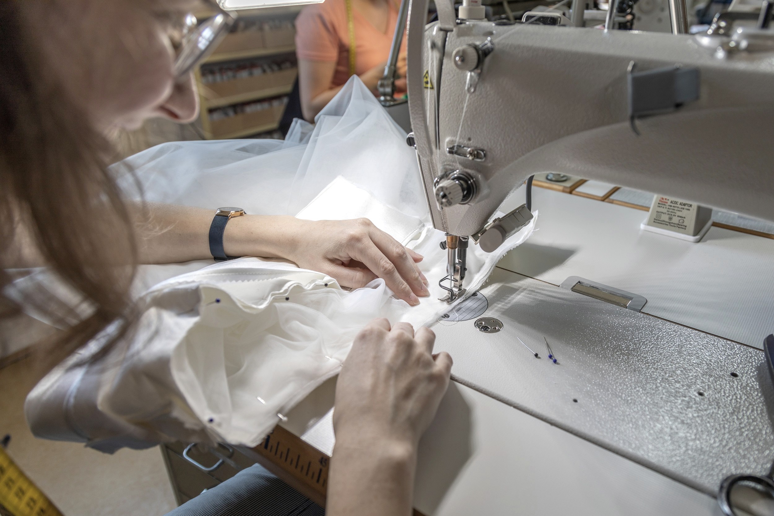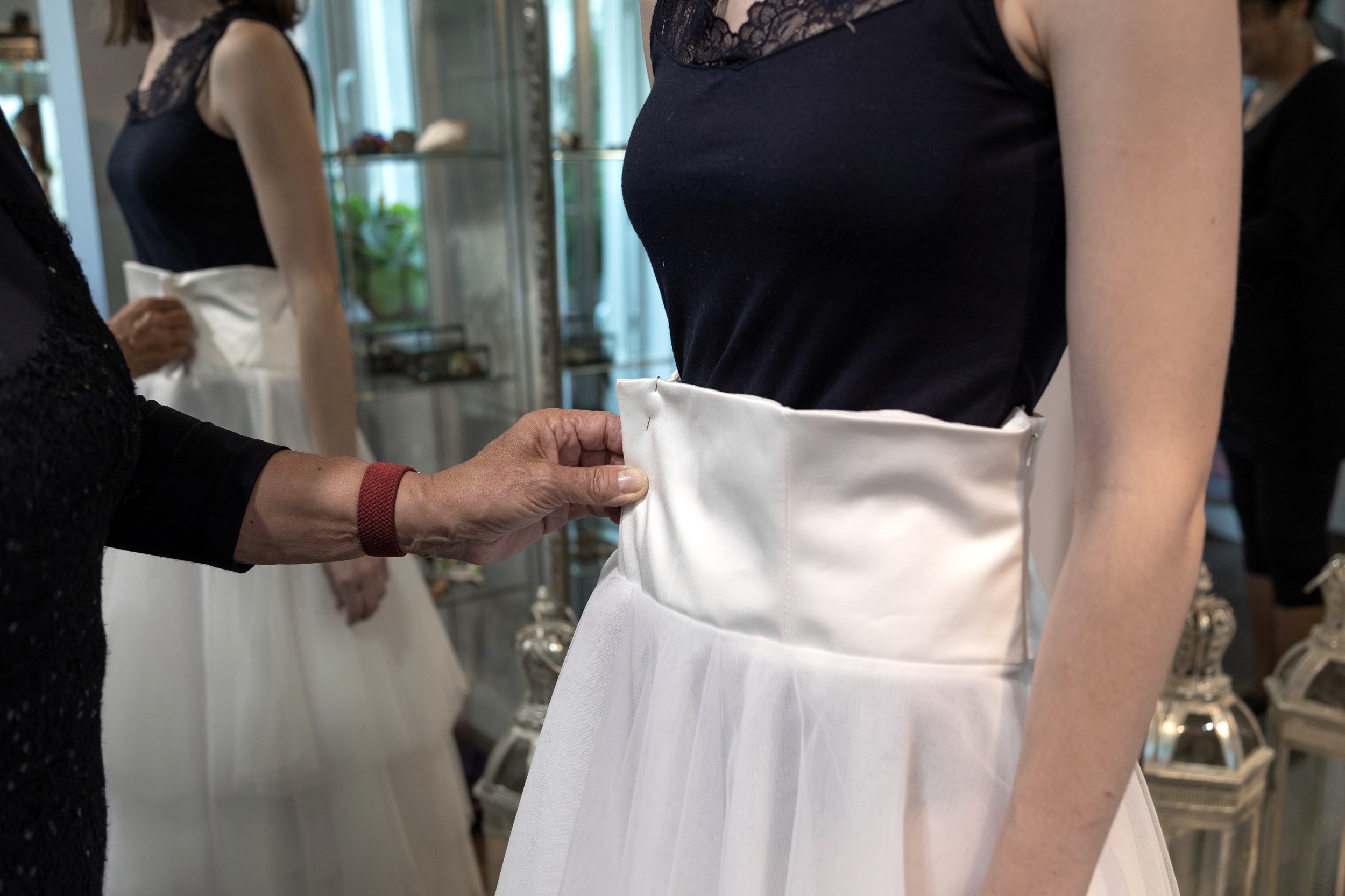 „Gute Mode ist Zeitgeist. Aber sie ist kein Diktat, dem sich Menschen unterwerfen, sondern etwas Bewegtes. Ich finde, in Kleidung sollte man sich vor allem geborgen fühlen. Darum gibt es immer ausführliche Gespräche, bevor ich für jemanden etwas entwerfe.“ Und wenn sich die Menschen verändern, wandelt sich die Kleidung mit ihnen – Gaspers Team scheut daher auch nicht die professionelle Änderungsschneiderei. Da steht das Handwerkliche im Vordergrund, bei den Skizzen zu neuen Kollektionen das Design und das Künstlerische. Das gilt auch für das Upcycling: Beispielsweise historisches Leinen wird im Atelier von Margret Gasper zu ganz neuen Kreationen. Inspirationen holt sie sich unter anderem in der Eifellandschaft mit ihren natürlichen Farben und pflanzlichen Texturen. Sie versteht sich als Teamplayerin, die Anregungen diskutiert und weitergibt. Azubis und Mitarbeitende kommen von überallher, aus deutschen Großstädten, aus dem Ausland, aus der Eifel. „Hier finden sie die richtige Mischung aus Ruhe und Kultur“, weist die Modedesignerin auf die Nähe zu Luxemburg oder zur Mosel als Festivalregion hin. Margret Gasper hat in Trier nach ihrem Meisterberuf Modedesign studiert. Mit Blick auf ein Revival des Schneiderhandwerks bildet sie leidenschaftlich gern aus. Zugleich ist ihre Hoffnung, dass ihr Atelier in Waxweiler für einige ihrer Nachwuchskräfte die Initialzündung liefert, sich in der Region in Sachen Mode selbstständig zu machen.