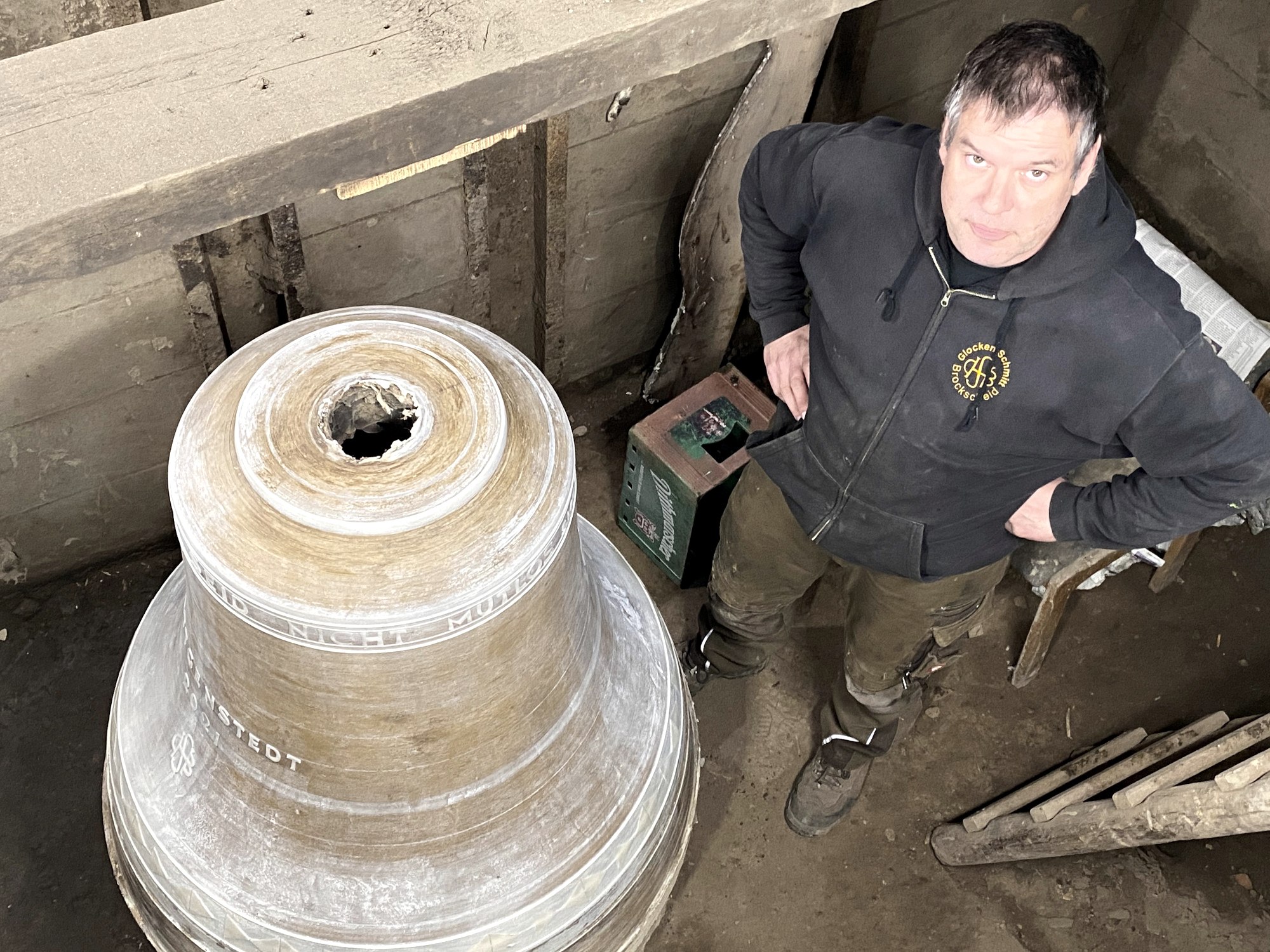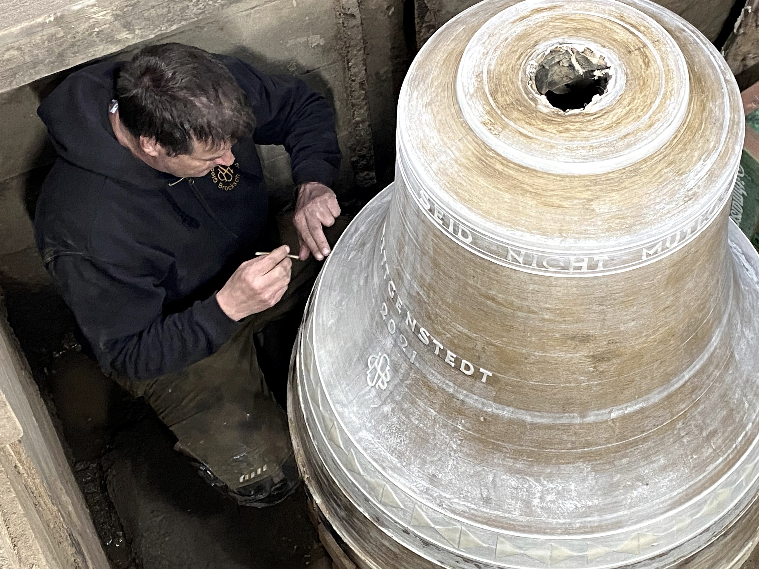 Jede Glocke ist ein Unikat und passt nur zu dieser einer Kirche mit diesem einen Geläut. Aber mit ihrem Guss ist es für das Team von Christoph Schmitt bei Weitem noch nicht getan. Wenn eine Kirchengemeinde eine neue Glocke bekommt, fangen die Arbeiten mit der Konstruktion und dem Einbau von Eisentreppen und Holzböden für den Aufstieg an. Auch die aus hölzernen Lamellen bestehenden Schallfenster eines Glockenturms müssen exakt bemessen und gestaltet werden, um eine möglichst gleichmäßige Beschallung zu erreichen. „Bei all dem ist moderne Arbeitssicherheit oberstes Gebot.“ Es werden Schaltuhren etwa mit Funksteuerung eingebaut, denn niemand läutet Glocken noch per Hand. „Im Grunde sind wir Allrounder, die schmieden, zimmern und Elektronik abstimmen“, sagt Schmitt, „es ist eine Art Instrumentenbau in groß.“ Um Kunden muss Schmitt jedenfalls nicht werben, obwohl er deutschlandweit oder manchmal sogar in Übersee arbeitet. „Das läuft alles per Empfehlung.“ Aussterben wird das alte Handwerk wohl nie.