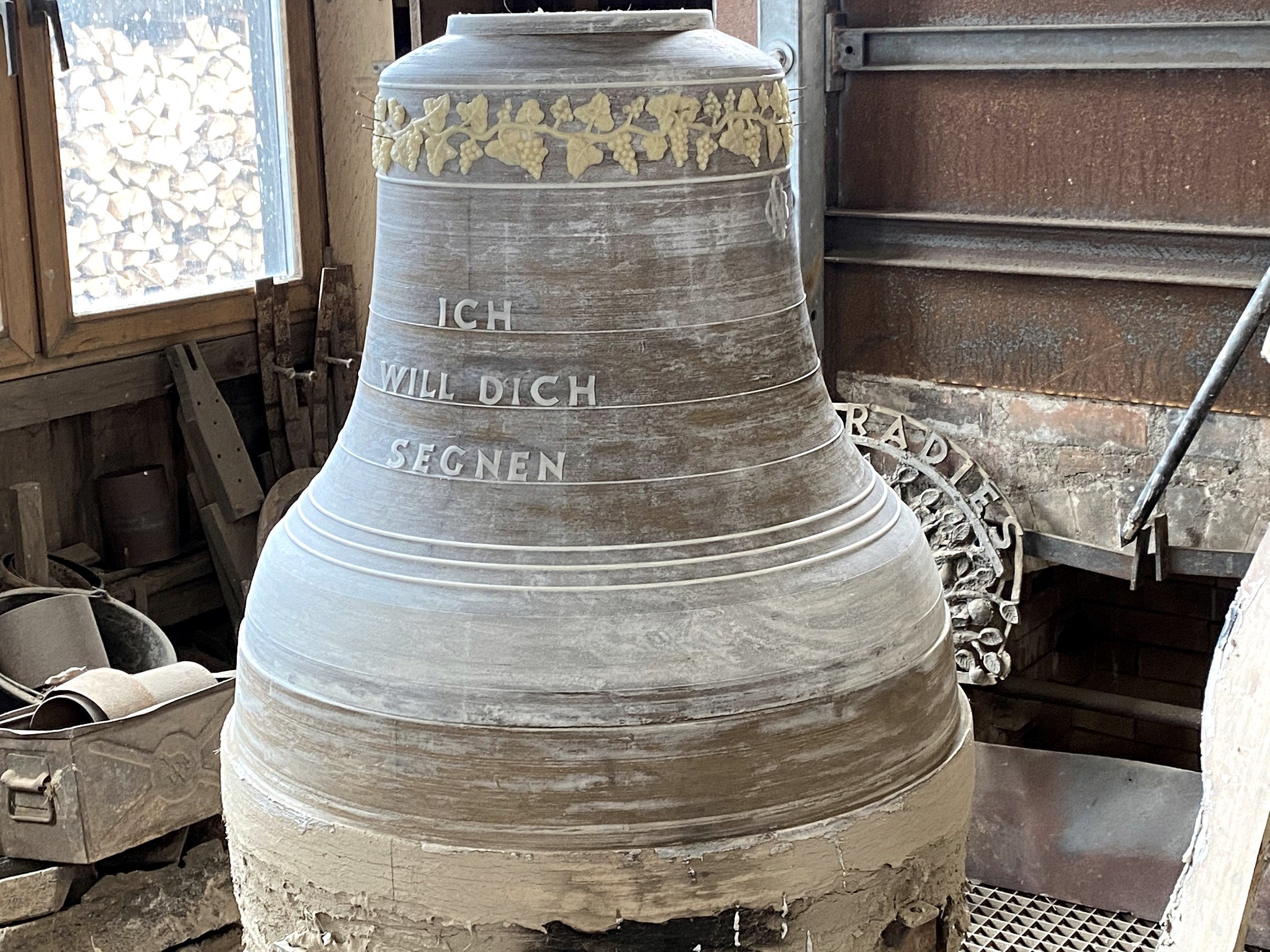 Rund um die Werkstatt hinter dem Schmitt’schen Haus am Ortsrand riecht es nach Holzfeuer. Vor der Werkstatt sind an einem hölzernen Gestänge matt schimmernde Glocken in allen erdenklichen Formen aufgehängt. „Hier kann ich den Kunden – zumeist Kirchengemeinden aus ganz Deutschland – erläutern, welche Formen welche Töne hervorbringen… manche weich, manche ‚schreiend‘“, erzählt Christoph Schmitt. Er ist von Hause aus studierter Luft- und Raumfahrtingenieur. Das traditionelle Handwerk war für ihn vor allem Lernen beim praktischen Tun über Jahre hinweg, denn die klassische Gesellen- und Meisterausbildung im Glockenguss ist längst so gut wie ausgestorben. Mit seiner ursprünglichen Fachhochschulausbildung verbindet den Beruf des Glockengießers, dass höchste Präzision, Mathematik und Fachwissen – etwa über Akustik und Schallabstrahlung – verlangt werden. Vor dem Entwurf jeder Glocke steht für Schmitt eine genaue Ortsbegehung dort, wo sie eines Tages läuten soll: „Welche Bebauung und welche Bepflanzung machen das Umfeld aus? Danach richtet sich nicht nur der Guss der Glocke selbst, sondern auch, wie wir den Glockenturm bauen.“ Alles muss perfekt aufeinander abgestimmt sein: die Klangfarbe der Glocke, der Rhythmus und die Schlagzahlen ihres Läutens sowie die Lautstärke. Nur dann ergibt alles zusammen ein harmonisches Ganzes.