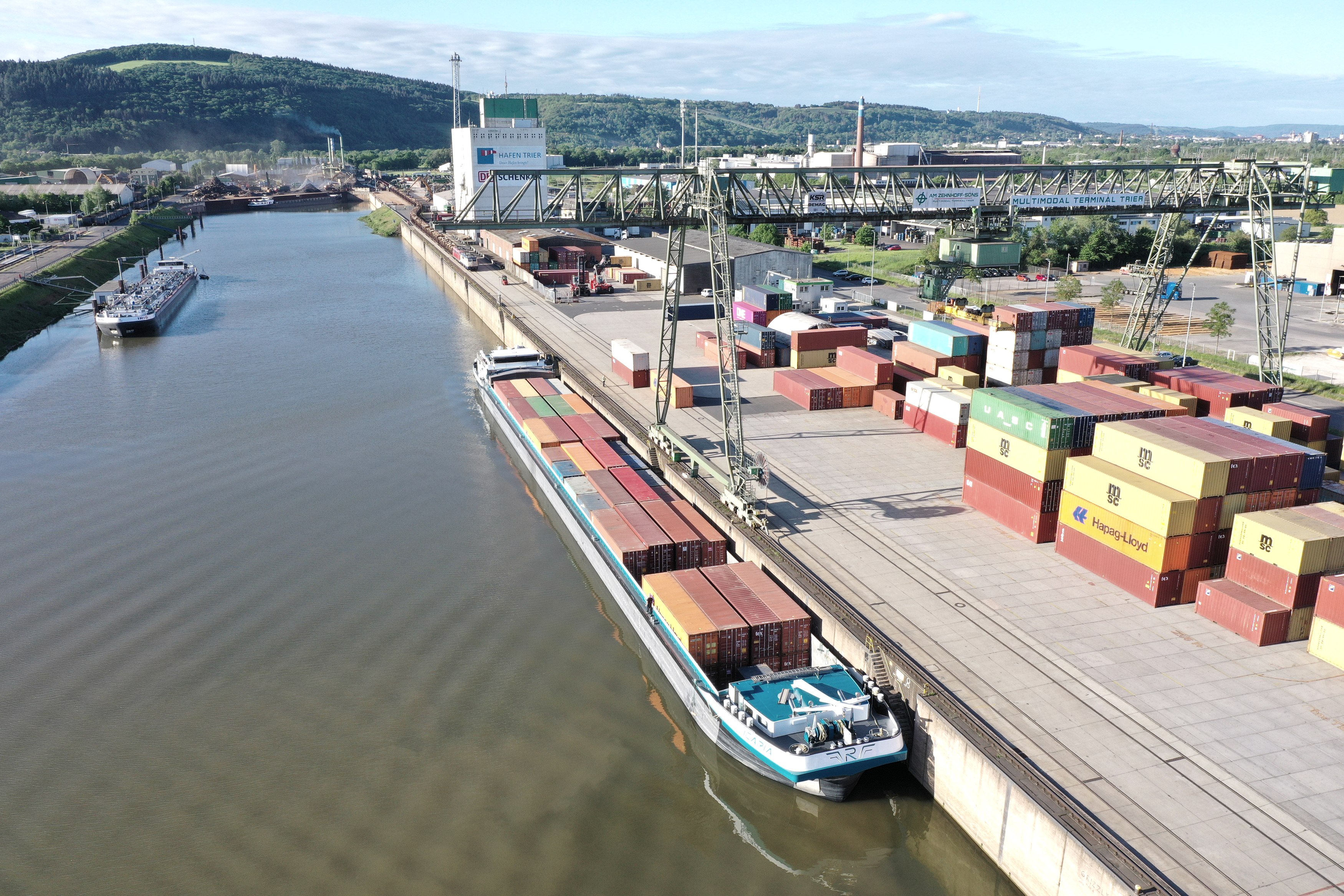 Die intelligente Vernetzung von Frachtschifffahrt, Güterschienenverkehr und Lkw-Logistik möglichst mit eMobilität ist Kern des Begriffs „trimodal“. Drei Arten des Transports bilden zusammen eine funktionierende Lieferkette vom Herzen Westeuropas bis zu den großen Seehäfen Rotterdam und Antwerpen. Im Hafen von Deutschlands ältester Stadt wird das alltäglich und konkret gelebt. „Wir stellen die Infrastruktur zur Verfügung, damit unsere Kunden die Bevölkerung der Region versorgen und ihre Erzeugnisse exportieren können“, bringt es Volker Klassen, Geschäftsführer der Trierer Hafengesellschaft mbH, auf den Punkt. Per Binnenschiff und Bahn finden viele Güter ihren Weg und werden am Hafen Trier für den Weitertransport umgeschlagen: Zum Beispiel Brennstoffe und Treibstoffe gehen von hier aus an die Tankstellen und örtlichen Heizöllieferanten, auch gigantische Papierrollen aus den USA kommen an oder Verpackungen beispielsweise für die Getränkeindustrie der Eifel. Auch Flugasche für die Deponieabdeckung in Sehlem macht Station im Hafen.