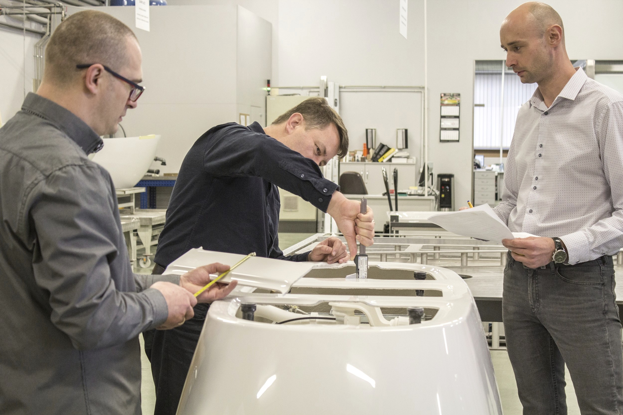 In Schneidhausen sind rund 80 Mitarbeiter Kaufmännischen Verwaltung, im Vertrieb, in der Logistik sowie in der Whirlwannen-Fertigung beschäftigt. Mit Innovationskraft und Engagement ist es auch den neuen Inhabern gelungen, den Standort des Unternehmens am Fuße der Rureifel zu halten und zukunftsfähig zu gestalten. Dazu zählt auch der hochwertige und extrem widerstandsfähige Solique Mineralguss, der seit etwa acht Jahren zum Einsatz kommt. „Damit sind noch feinere Formen möglich“, erzählt Reiner Rierl. Ein weiterer Beweis für die Innovationsfreude bei Hoesch.