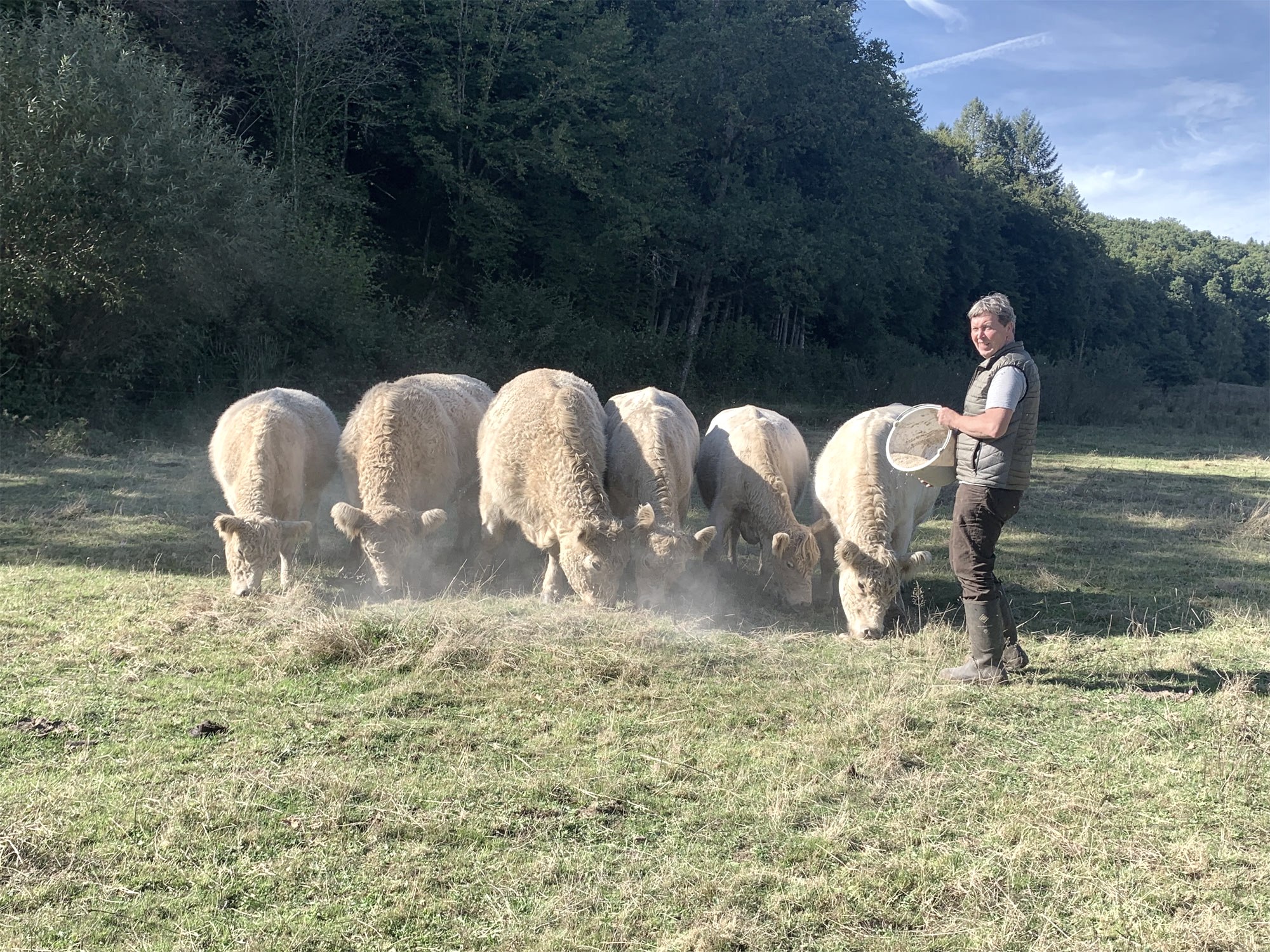 Die Fleischverarbeitung findet in einem neu eingerichteten Zerlegungs- und Verarbeitungsraum am Hof statt. Hier entstehen dann neben Steaks, Tafelspitz, Gehacktes oder Gulasch auch verfeinerte Fleisch- und Wurstspezialitäten wie Bratwürste oder Rinderpasteten. Alles wird schonend schockgefrostet, die Bolognese als delikates Fertiggericht zubereitet und eingekocht. Geordert werden können beispielsweise 5 kg oder 10 kg Rindfleischpakete mit verschiedenen tiefgekühlten Produkten, darunter auch Hackfleisch-Pattys. „Um nachhaltig zu planen, wollen wir erst dann schlachten, wenn wir das Fleisch eines Tieres vorab verkauft haben“. Ziel sei auch, mit diesem besonderen Qualitätsfleisch die gehobene Gastronomie zu beliefern.