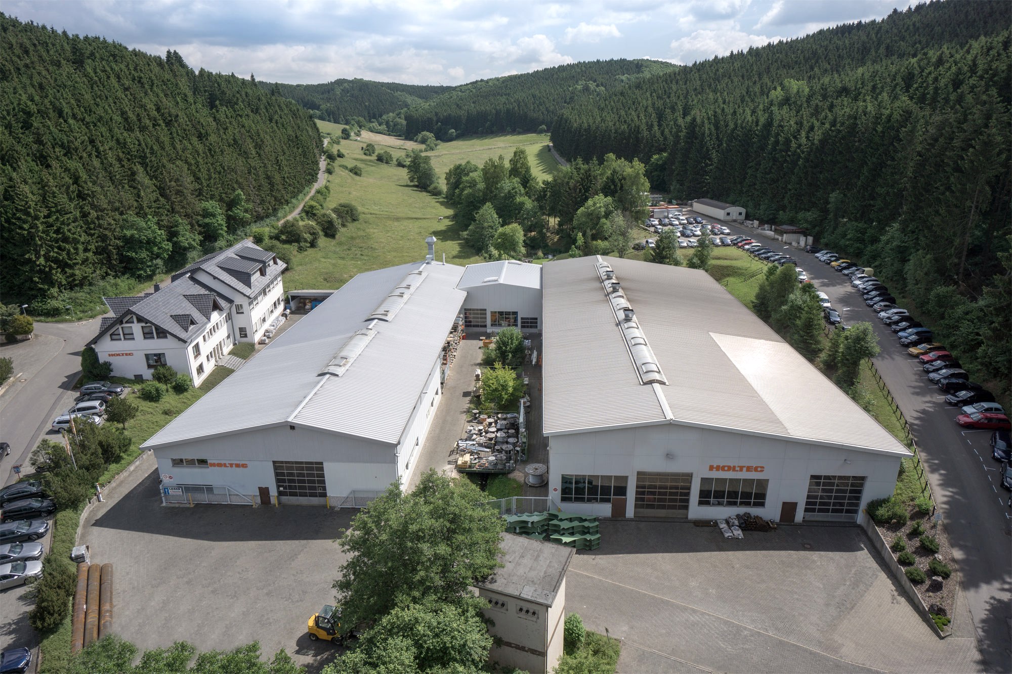 Die Aufgaben der Beschäftigten bei der HOLTEC GmbH & Co KG in Hellenthal-Blumentahl sind vielfältig und anspruchsvoll: Für den internationalen Markt werden Anlagen für die Holzindustrie geplant und gebaut, die Rundholzmanipulation für die Sägeindustrie zählt dazu ebenso wie Holzplatzanlagen für die Holzwerkstoffindustrie oder Paketkappsägen. Geliefert werden die Anlagen weltweit. Die insgesamt 180 Mitarbeiter – 140 am Hauptsitz in Blumenthal und weitere 40 im sächsischen Jänkendorf – sind gut ausgebildet und engagiert.