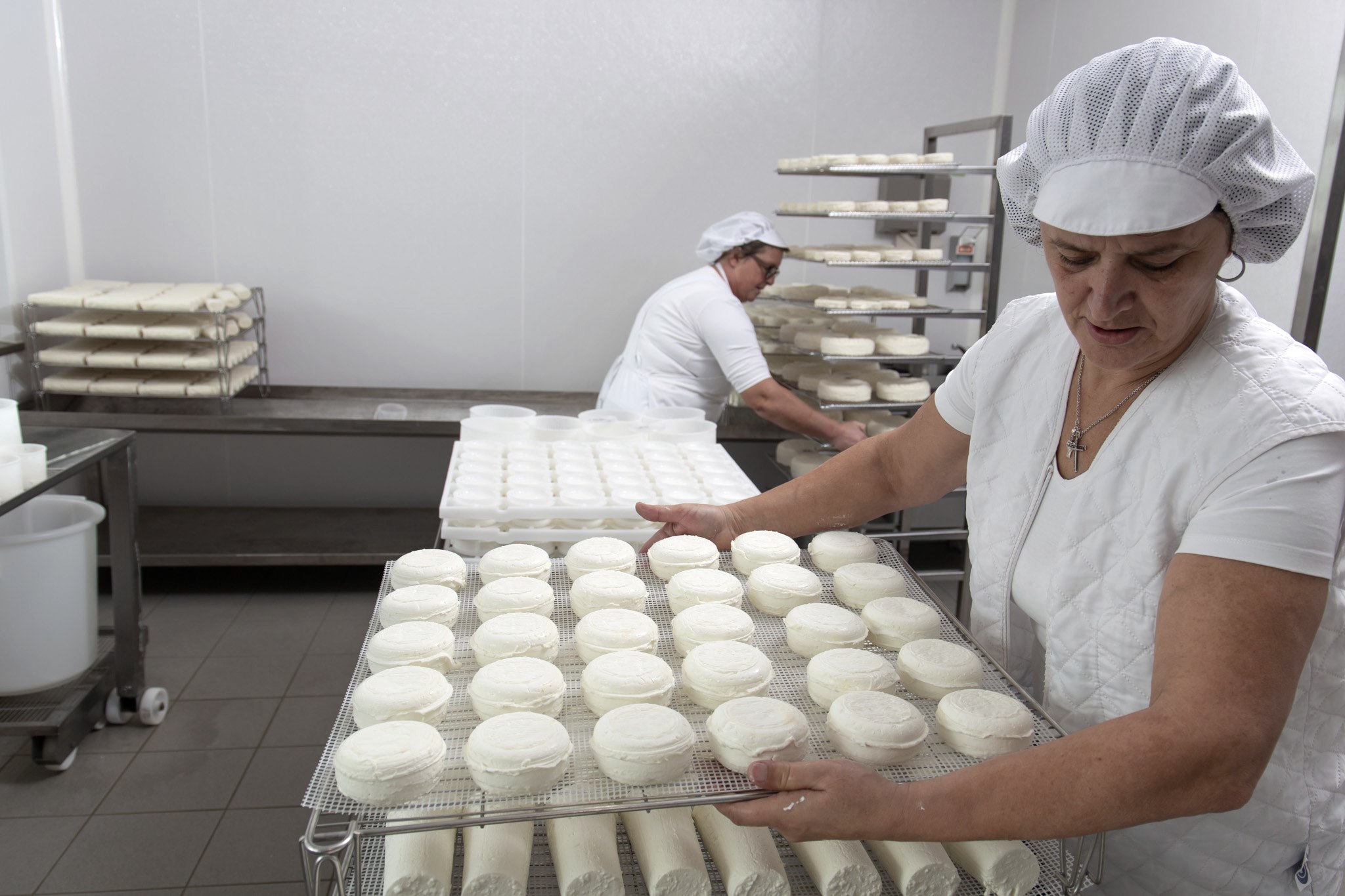 Zurück in der Heimat baut sie sich am elterlichen Hof ihre eigene Ziegenkäserei auf. Hier stellt Petra Elsen mit ihrem 5-köpfigen Team über 15 verschiedene Sorten aus unserer eigenen Ziegenmilch her. Die Sorten Chevre Noire, Buchett oder der Frischkäse Provencale verraten noch heute, wo sie ihr Käserei-Handwerk erlernt hat. In ihrer Manufaktur wird trotz modernster Technik noch sehr vieles per Hand gemacht: Die gemolkene Milch wird mit Kulturen gesäuert, alles zusammen eingelabt, später mit der Hand in Formen geschöpft und während des Reifeprozesse immer wieder händisch gewendet und abschließend gesalzen. Die frische Milch geben ihre rund 100 Ziegen, die im Sommer auf den umliegenden Wiesen grasen und im Winter im großzügigen Freilauf-Stall ihren Unterschlupf finden. Morgens in der Frühe werden sie von ihrer Besitzerin und Helferinnen gemolken – alles ist hier in Frauenhand.