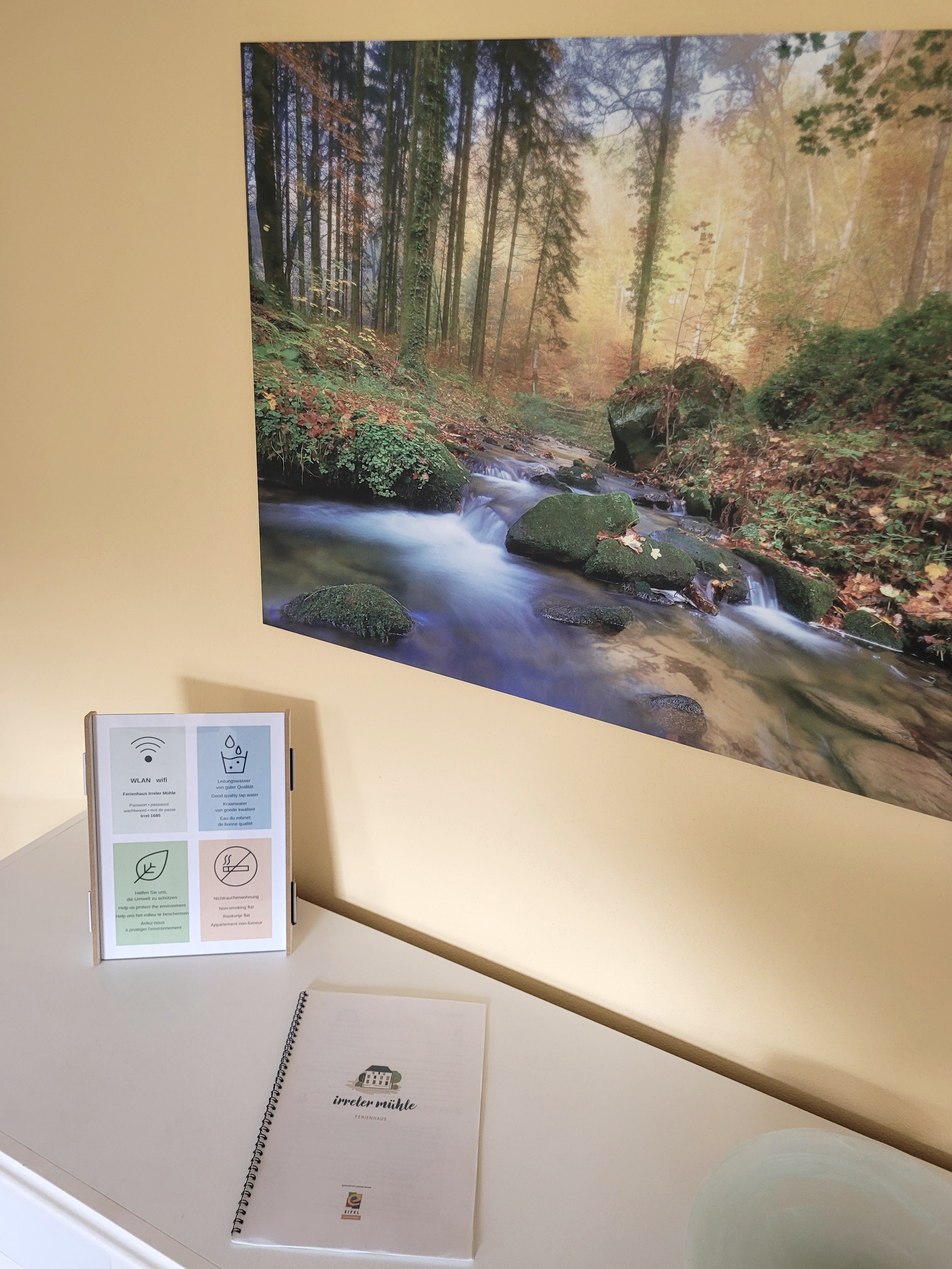 Nachhaltig wurde auf der Irreler Mühle schon gewirtschaftet, als man den Begriff noch gar nicht kannte. Ob Energieerzeugung aus Wasserkraft oder das Wiederaufbauen aus recycelten Natursteinen – die Familie hatte über all die Generationen einen engen Bezug zur Natur. Das war auch die Maßgabe beim Ausbau der Ferienwohnungen Anfang der 2000er: viel natürliches Holz, mineralische Putze und Farben, naturnahe Außenanlagen mit regionaler Bepflanzung. „Die Hochwasserkatastrophe bestärkte uns darin, unsere Verantwortung für die Umwelt noch höher zu gewichten als wir das bisher schon taten“, so Elke Wagner, die das Ferienwohnungsgeschäft gemeinsam mit ihrer Schwester Annette Schlösser betreibt, unterstützt von ihrer Mutter und beiden Familien. Durch die Flut wurden die Öl- und Gasheizungen der Häuser im Bereich der Mühle zerstört. Familie Wagner-Schlösser nutzte die Chance, mit planerischer Unterstützung durch den befreundeten Architekten Roland Wagner ein Nahwärmenetzwerk für das Ferienhaus und die benachbarten Häuser der Familie aufzubauen – regenerativ mit Holz und Sonnenkraft. Zudem widmete man sich einer Umwelt-Zertifizierung und wurde Anfang 2023 mit dem Green Key-Label ausgezeichnet. Hierdurch werden viele Maßnahmen – vom Ressourceneinsparen über ökologische Reiniger bis zur Verwendung regionaler Produkte – strategisch angegangen und die Messlatte Jahr für Jahr höher gehangen. Da auch die Gäste einen entscheidenden Anteil am Erfolg haben, werden diese über die Gästemappe und weitere Tipps und Hinweise sensibilisiert und informiert, wie sie das Nachhaltigkeitsbestreben durch ihr eigenes Verhalten während des Ferienaufenthaltes unterstützen können, und angeregt, Ideen auch mit nach Hause zu nehmen. „Das Bemühen um Nachhaltigkeit entspricht unserer Überzeugung, bedeutet für uns aber auch eine Steigerung der Qualität und ist gleichzeitig ein Mittel zur Kostenersparnis“, sagt Elke Wagner. „Und das Zertifikat bietet uns die Möglichkeit, unseren Betrieb besser auf dem Markt zu positionieren.“
