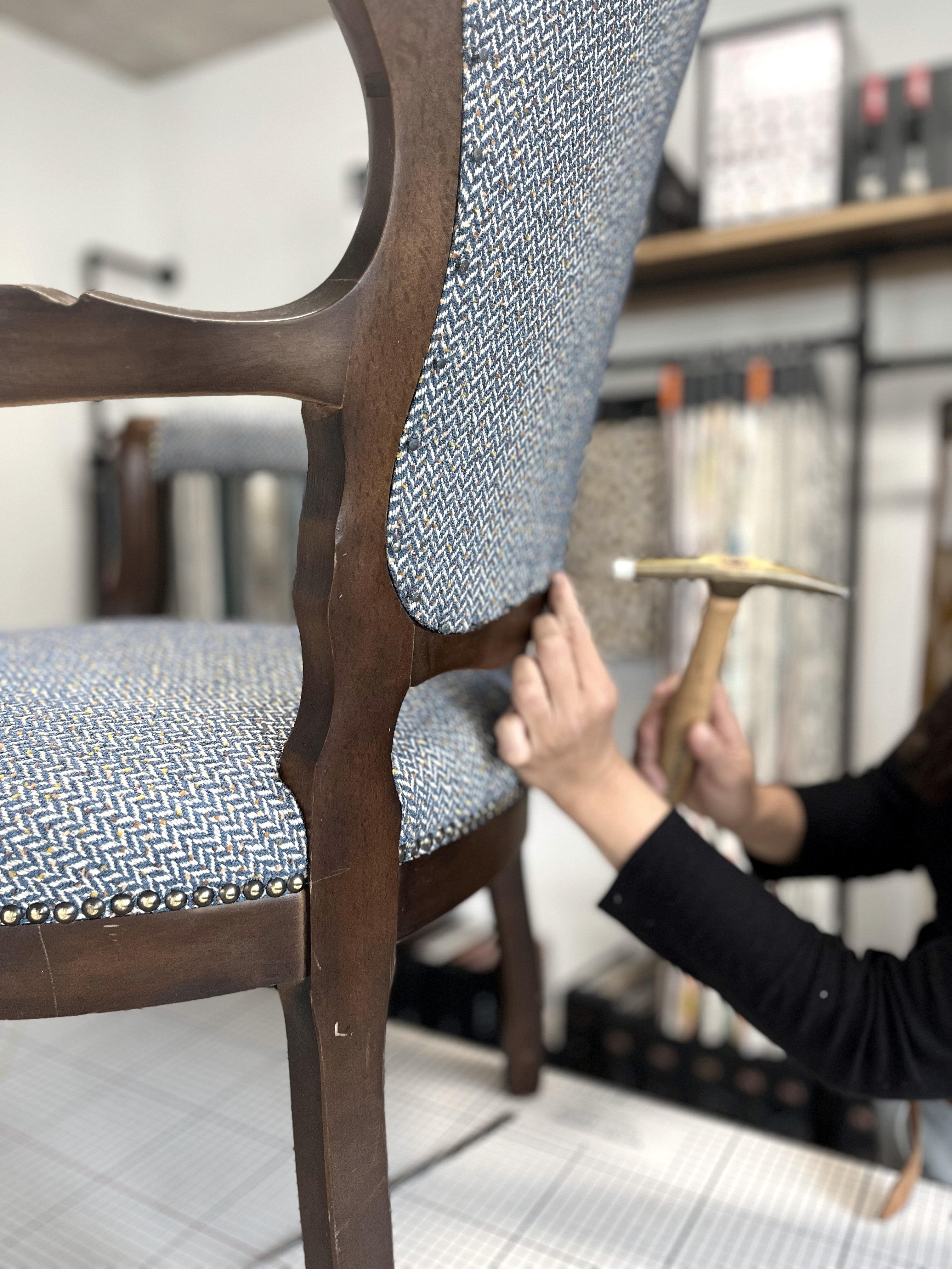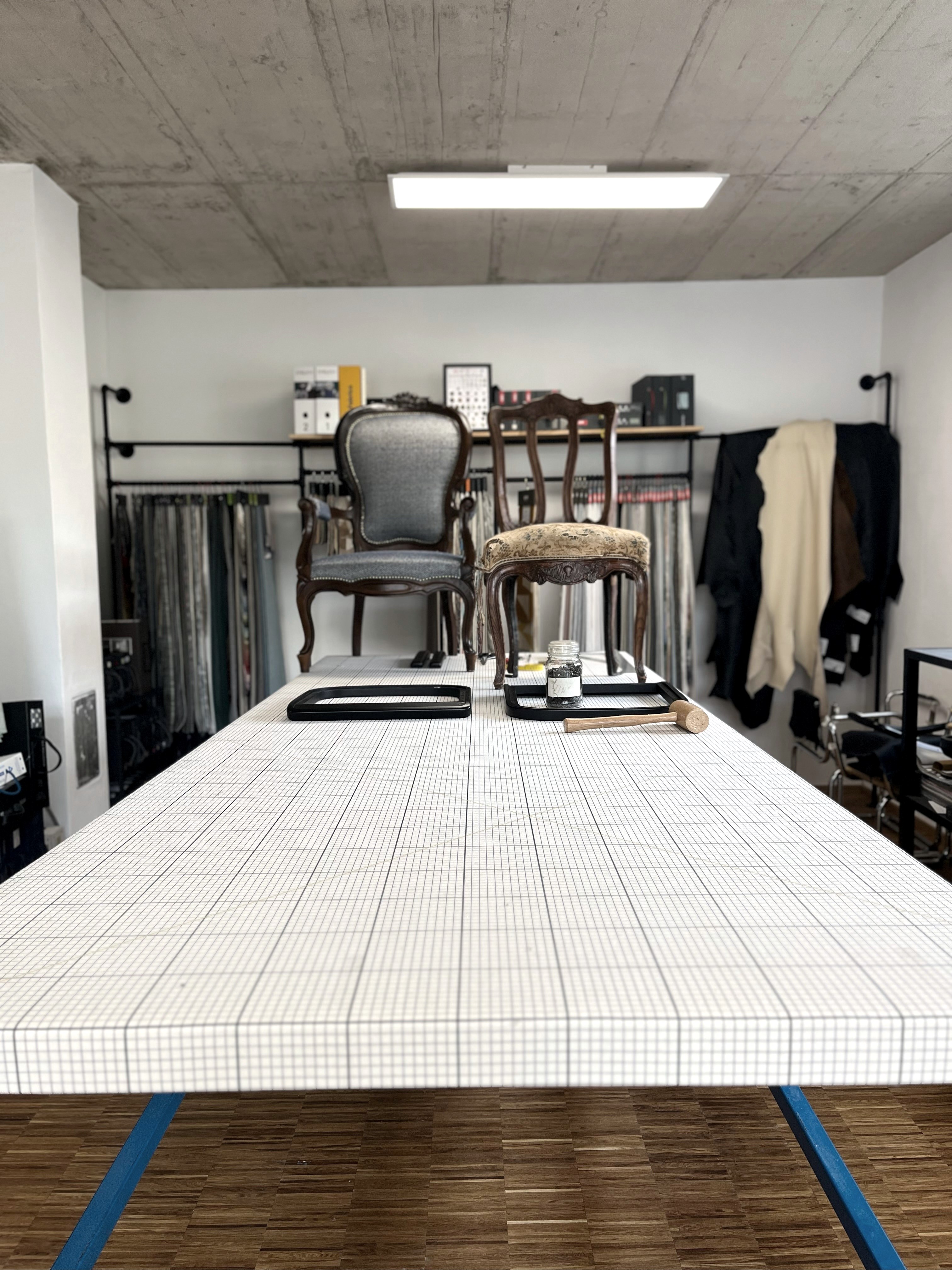 Dabei reicht das Portfolio von erschwinglichen Lösungen bis hin zu exklusiven Maßanfertigungen. Derzeit konzentriert sich Jung auf die Polsterung von Stühlen, Sofas oder Sesseln – in ihrer Werkstatt steht eine zu bearbeitenden Küchen-Eckbank neben historischen Sesseln aus einem Eifeler Schloss. Sie plant Fachkräfte auszubilden und einzustellen und dann neben Polsterarbeiten auch textile Wandgestaltungen oder Gardinenservices anzubieten.
