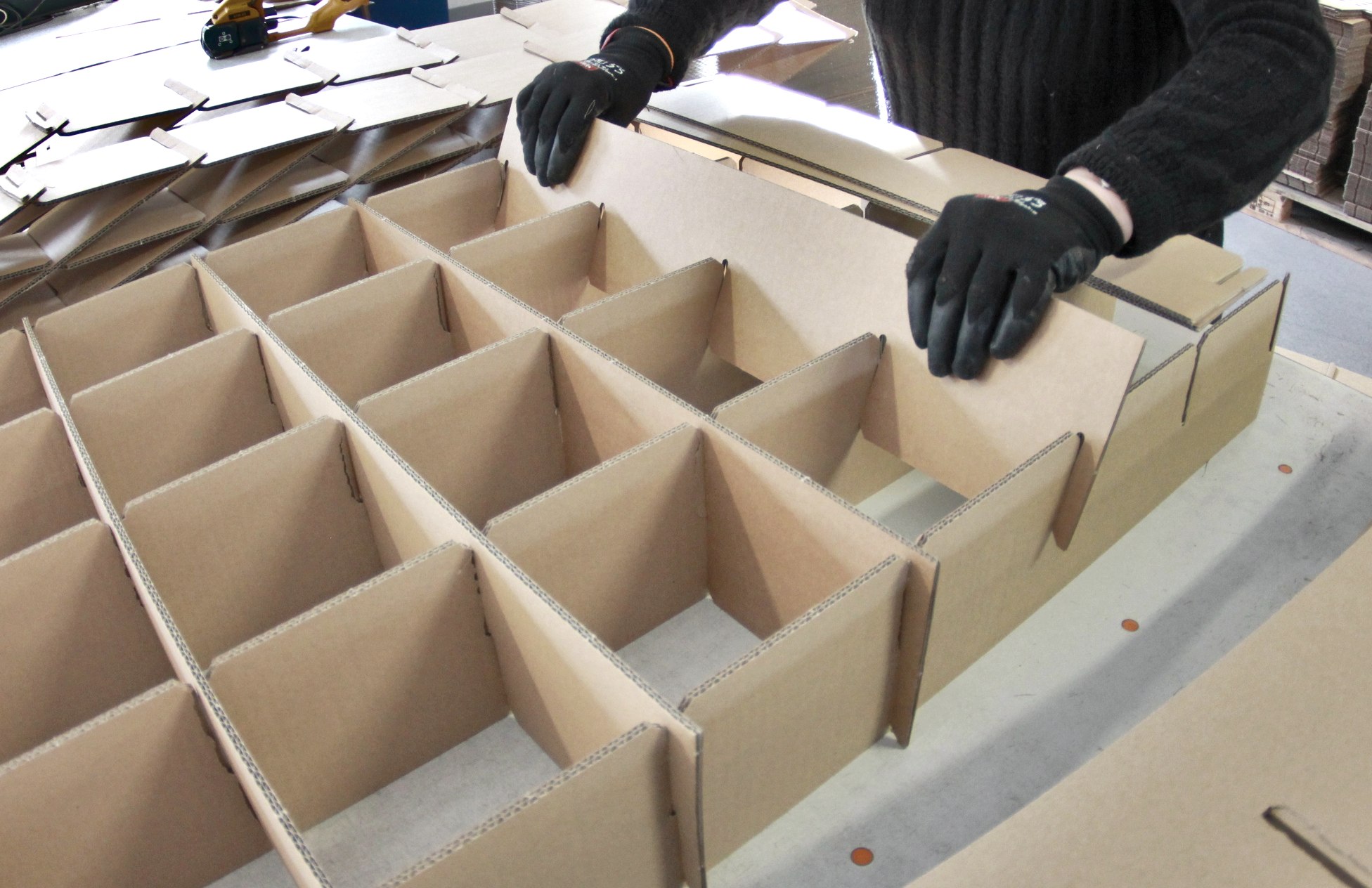 Das KTS-Team entwickelt Prototypen der jeweils optimalen Verpackung. Dabei spielen die Materialeigenschaften eine Rolle… Wellpappe beispielsweise weist je nach Jahreszeit mit Luftfeuchtigkeit oder Temperatur andere Stabilitätskriterien auf. Darüber hinaus entscheidet das Volumen des zu transportierenden Guts über die Konstruktion und die Fertigungsweise. Kartonagen bis zu sechs Metern Bogenlänge können auf den KTS-Maschinen einteilig verarbeitet werden. KTS verfügt über eine eigene Konfektionsabteilung, um Verpackungen voreinzurichten. „Wir sind in einer stabilen Nische mit wenigen Wettbewerbern aktiv, doch gerade da kommt es darauf an, besser zu sein als andere.“ Das Know-how haben VerpackungsmitteltechnologInnen oder MaschinenführerInnen, die eigens angelernt werden. Eine Kooperation mit der FH Aachen, die für KTS bereits erfolgreich dual Studierende ins Team einband, wird in 2024 wieder aufgenommen.