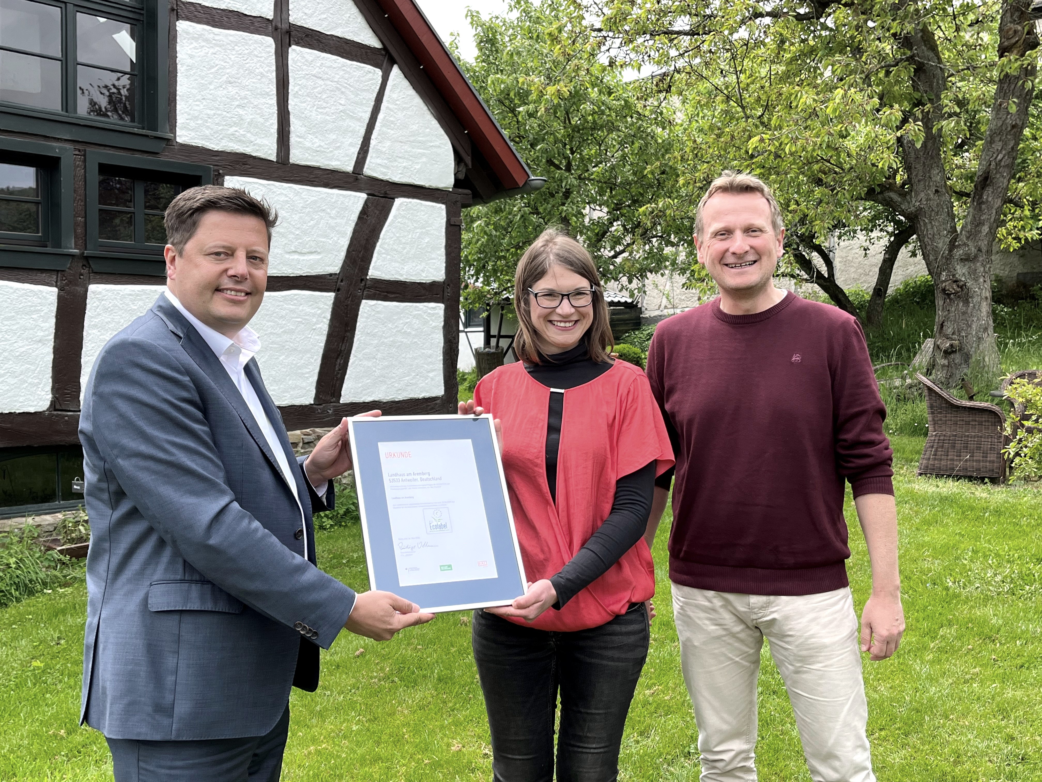Rolf und Stephanie Pannhausen sind mit ihrer damals 7-jährigen Tochter Mara aus Düsseldorf in ein kleines Eifeldorf gezogen. Antweiler statt trendiger Altstadt, Ahr statt Rhein… für die junge Familie entpuppt sich die Entscheidung als Glücksgriff. Mit ihrem „Landhaus am Aremberg“ ist sie unter die Eifelgastgeber gegangen und setzt konsequent auf Nachhaltigkeit.