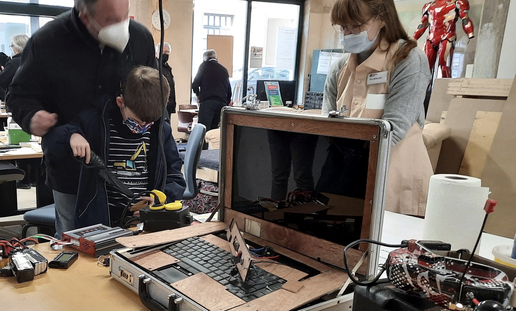 Das leer stehende Ladenlokal in der Wittlicher Innenstadt ist ein Treffpunkt für Kreative, Tüftler und Erfinder. Unabhängig von individuellen Kenntnissen und Fähigkeiten können hier jung und alt werkeln und experimentieren. Wer sein eigenes Projekt realisieren und sich ungestört kreativ ausleben möchte, greift während der offenen Werkstatt-Treffs auf die große Bandbreite an Gerätschaften zurück – von 3D-Druckern über Plotter, CNC-Fräse, Werkzeugen oder Nähmaschinen bis hin zu PCs mit umfangreicher Hard- und Software. Im Makerspace finden darüber hinaus vielfältige Seminare, Schul-AGs, Ferienprogramme und Workshops statt. Hier werden die Teilnehmenden in vielfältigen spannenden Kursen angeleitet, beispielsweise ferngesteuerte Autos zu bauen, Textilien upzucyclen oder Trickfilme zu drehen. Im Mittelpunkt steht der handwerkliche Umgang mit den unterschiedlichen Materialien wie Holz, Kunststoff, Metall und Textilien – meist in enger Kombination mit Technik und digitalen Anwendungen. Dazu passt dann auch die neue Idee gut ins Konzept: Einmal monatlich laden die Makerspace-Organisatoren ins Repair-Café ein, wo Bürgerinnen und Bürger von versierten ehrenamtlichen Handwerkern defekte Geräte reparieren lassen können.