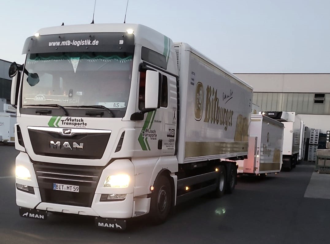 MTB hat sich schon längst über die Getränkebranche hinaus einen Namen gemacht. Viele heimische Hersteller und Händler vertrauen ihre Frachtgüter dem Bitburger Logistiker an. Ob sicherer Transport großer Glasscheiben oder just-in-Time-Lieferung von Bauteilen hiesiger Automobilzulieferer: Eine ausgeklügelte Planung sorgt dafür, dass die Ware unbeschadet und pünktlich am gewünschten Ort ist und die Fahrzeuge mit möglichst wenig Leerfahrten über die Straßen rollen. Damit das gelingt, setzt MTB ausschließlich gut ausgebildetes Fachpersonal ein. „Wir bilden seit über 20 Jahren LKW-Fahrer aus“, so Thomas Mutsch, der den Betrieb mit seinem Bruder Johannes führt. Von Aushilfsfahrern aus dem osteuropäischen Raum halten die beiden wenig – ihnen ist wichtig, dass die Fahrer sich mit dem Kunden vor Ort in deutscher Sprache abstimmen können und gut geschult sind in den vielfältigen Aufgaben des Tagesgeschäftes. Damit die Mitarbeiter dem Unternehmen lange treu bleiben, ist den Mutsch-Brüdern wichtig, dass ihre Angestellten in der Eifel ihren Lebensmittelpunkt haben und hier integriert sind. Erstmalig bilden sie derzeit einen aus dem Iran stammenden Geflüchteten aus – die Unternehmer halfen bei den umfangreichen Genehmigungsverfahren, unterstützen ihn bei der Integration und geben dem jungen Menschen damit eine Bleibe- und Lebensperspektive in der Region. All das zahlt sich aus: „Wir haben im Vergleich zu anderen Spediteuren kaum Probleme, motivierte Leute zu finden.“ Beste Voraussetzungen also, dass auch in Zukunft die MTB-LKWs rollen – nicht nur für den Transport von Bier.