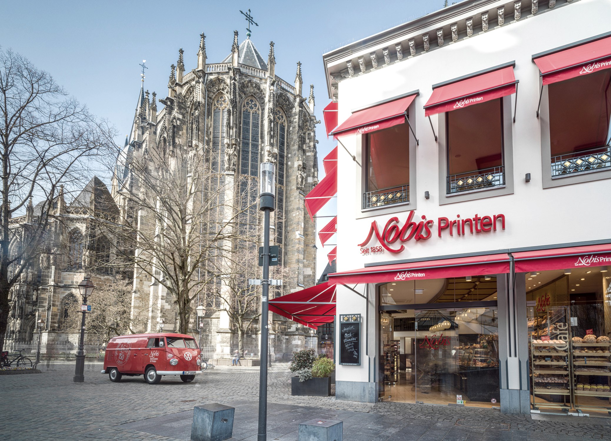 Die Aachener Printen sind ein großer Bestandteil in der Produktpalette der Bäckerei. Sie werden nach einem altüberlieferten Familienrezept in zahlreichen Variationen gefertigt und gebacken. Nicht nur die Aachener kommen in den Genuss der Nobis Printen. „Die Printen haben wir schon immer verschickt“, sagt Michael Nobis. Die Auswahl im Online-Shop ist groß und viele nutzen diesen Service, um sich ihre Lieblingsprinten nach Hause schicken zu lassen oder sie an Freunde, Bekannte und Verwandte zu verschenken. Um den Namen Aachener Printen verwenden zu dürfen, muss übrigens die Bäckerei im Stadtgebiet von Aachen liegen. Für Nobis Printen seit der Gründung des Familienunternehmens eine Selbstverständlichkeit.