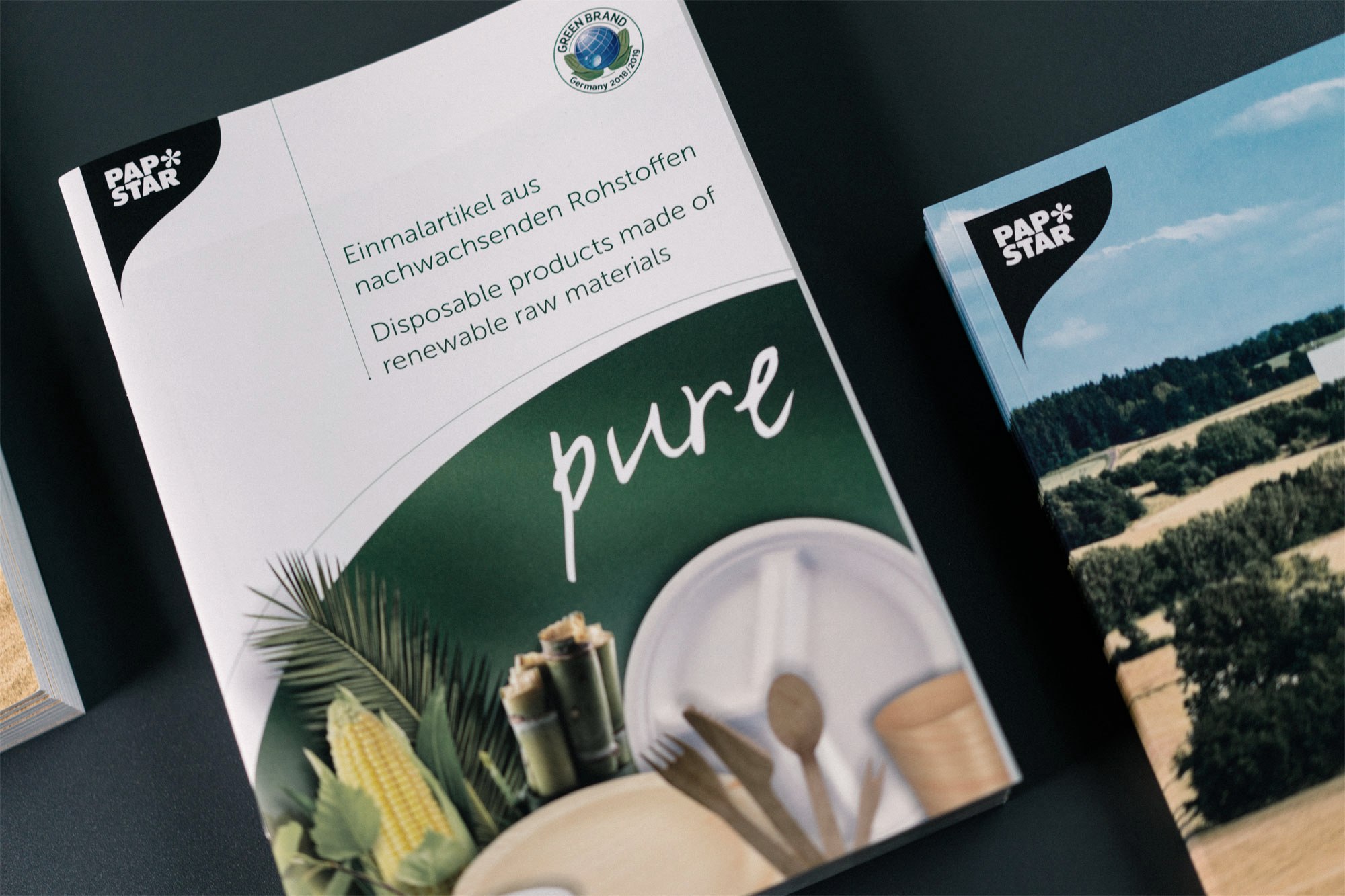 Begonnen hat alles vor fast 150 Jahren mit der Gründung der Pappenfabrik Oswald Matheis in Schleiden. Die Produktion und der Vertrieb von Kartonschalen und Tellern aus Pappe waren nicht nur namensgebend, sondern machten PAPSTAR schnell über die Landesgrenzen hinaus bekannt. „Wir haben schon immer auf nachwachsende Rohstoffe gesetzt“, so Bert Kantelberg im Gespräch. „Holz zum Beispiel ist ein elementarer Rohstoff für Papier und Pappe und wächst in der Eifel vor Ort. Auch das für die Produktion notwendige Wasser fließt praktisch vor der Haustür. Natürlich bieten wir bis heute aus Hygienegründen auch Produkte aus Kunststoff an, doch insbesondere in den letzten Jahren haben wir Schritt für Schritt den Kunststoff durch nachwachsende Rohstoffe ersetzt“, führt Kantelberg weiter aus. So entstand 2008 die Sortimentslinie „pure“. Bei diesem Einmalgeschirr und Serviceverpackungen bestehen beispielsweise Teller, Schalen oder Becher aus zu 100 Prozent aus biologisch abbaubaren und kompostierbaren Rohstoffen wie Holz und Frischfaser-Karton, Palmblatt, Zuckerrohr, Mais oder neuerdings auch aus Agrarresten.