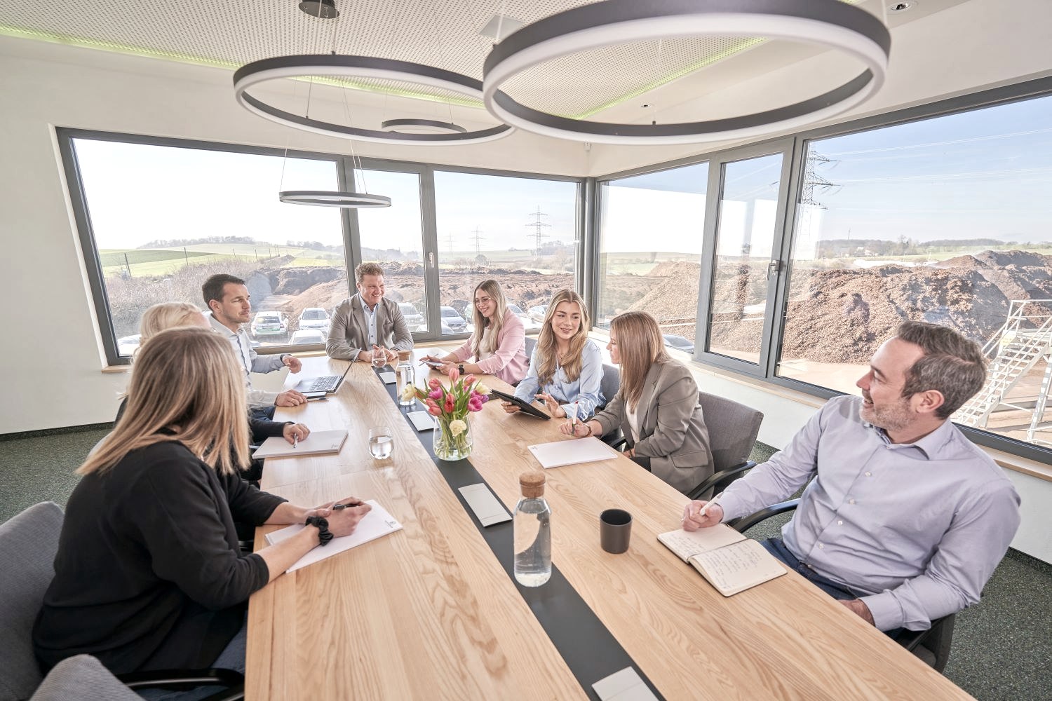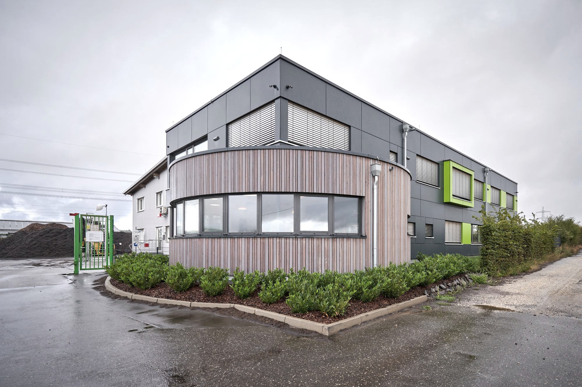 Das neue Verwaltungsgebäude ist ein Holzbau, der nebenbei von der Architektenkammer Rheinland- Pfalz aufgrund der besonderen architektonischen Elemente ausgezeichnet ist, energetisch bspw. durch Einsatz der Erdwärme, die gleichzeitig zur Kühlung des Bürogebäudes im Sommer genutzt wird, optimiert ist und den Mitarbeitenden mit viel Holz, Glas und Ausblicken in die hügelige Landschaft ein echtes Wohlfühl-Klima vermittelt.