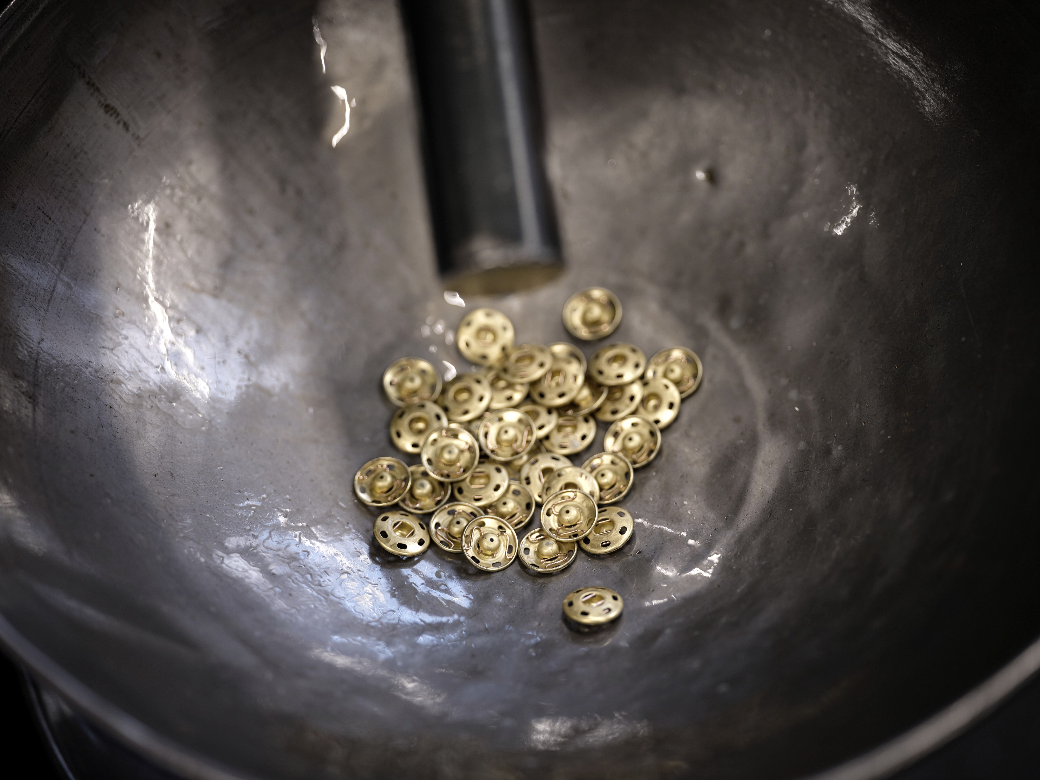 In Stolberg werden überwiegend Druckknöpfe in Messing und Edelstahl gefertigt und andere Spezialprodukte. Viele Knöpfe sind noch aus Kunststoff, doch in der Prym-Group experimentieren die Mitarbeiter mit verschiedenen Materialien wie Orangenschalen, Kaffeesatz oder Kartoffelstärke, um den Kunststoffanteil in der Produktion zu verringern und das Unternehmen nachhaltiger aufzustellen.