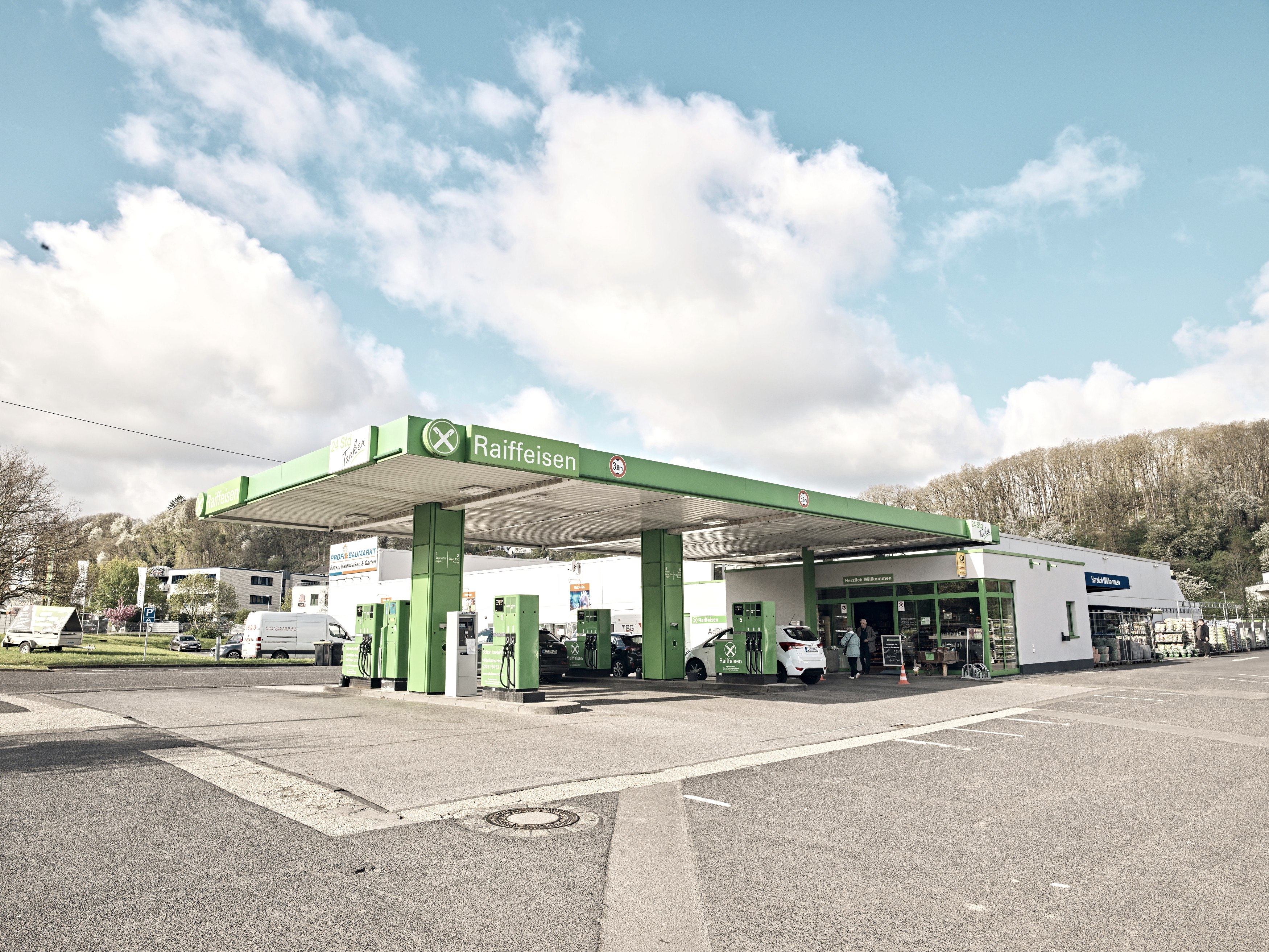 Nicht nur Landwirte, auch Bauunternehmer und private Bauherren gehören zur Kundschaft. Vom Zement über Dämmstoffe bis zu hochwertigen Pflastersteinen, all das ist in den Märkten zu finden. Darüber hinaus ist die Raiffeisen Rhein-Ahr-Eifel besonders in den ländlichen Gebieten Anlaufstelle für Hobbygärtner und Tierhalter. Ein weiteres wichtiges Standbein ist die Energieversorgung. Die Raiffeisen Rhein-Ahr-Eifel betreibt nicht nur eigene Tankstellen, sondern liefert auch Heizöl, Holzpellets und Flüssiggas bis an die Haustür. „Gerade in der Eifel, wo viele Menschen mit Öl oder Gas heizen, ist unser Energiegeschäft essenziell“, sagt der weitere Geschäftsführer der Raiffeisen Rhein-Ahr-Eifel, Thomas Monreal.