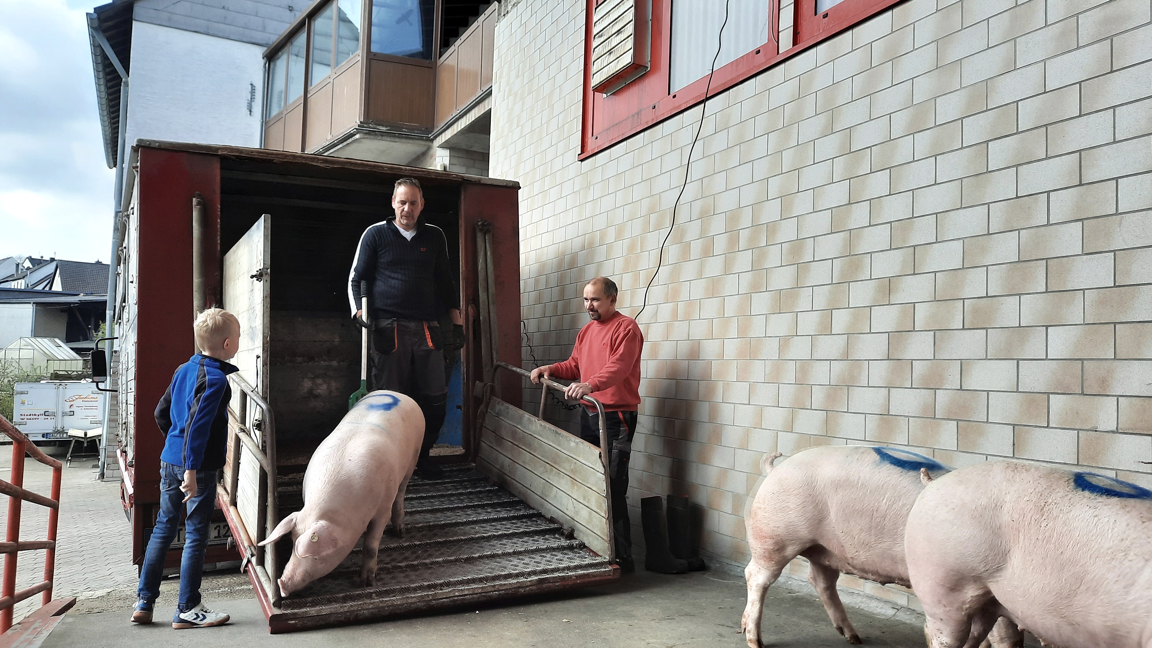 Diesen Tierwohl-Anspruch eint ihn mit dem Mötscher Landwirten Markus Ewen. Schon sein Vater baute vor über 20 Jahren zwei Aufzuchtställe, in denen die Ferkel auf Stroh gehalten werden und reichlich Platz zum Freilauf mit frischer Luft und Tageslicht haben. Zudem bietet er den Tieren hier genügend Fress-, Trink- und Spielmöglichkeiten. Die letzten vier Wochen verbringen die Schweine dann in einem modernen Maststall, in dem die Temperatur und Belüftung automatisch reguliert wird. „Durch unsere Art der Haltung kommen wir ganz ohne prophylaktische Antibiotika-Behandlung aus.” Darauf ist der Landwirt stolz – auch weil er dadurch ein Produkt mit guter Qualität liefern kann. Die Tiere kommen als junge Ferkel aus einem Betrieb im Nachbarort auf seinen Hof, das Futter baut er größtenteils selber an. Damit kann er eine transparente Aufzucht garantieren, die sogar über den geforderten QS-Richtlinien liegt.
