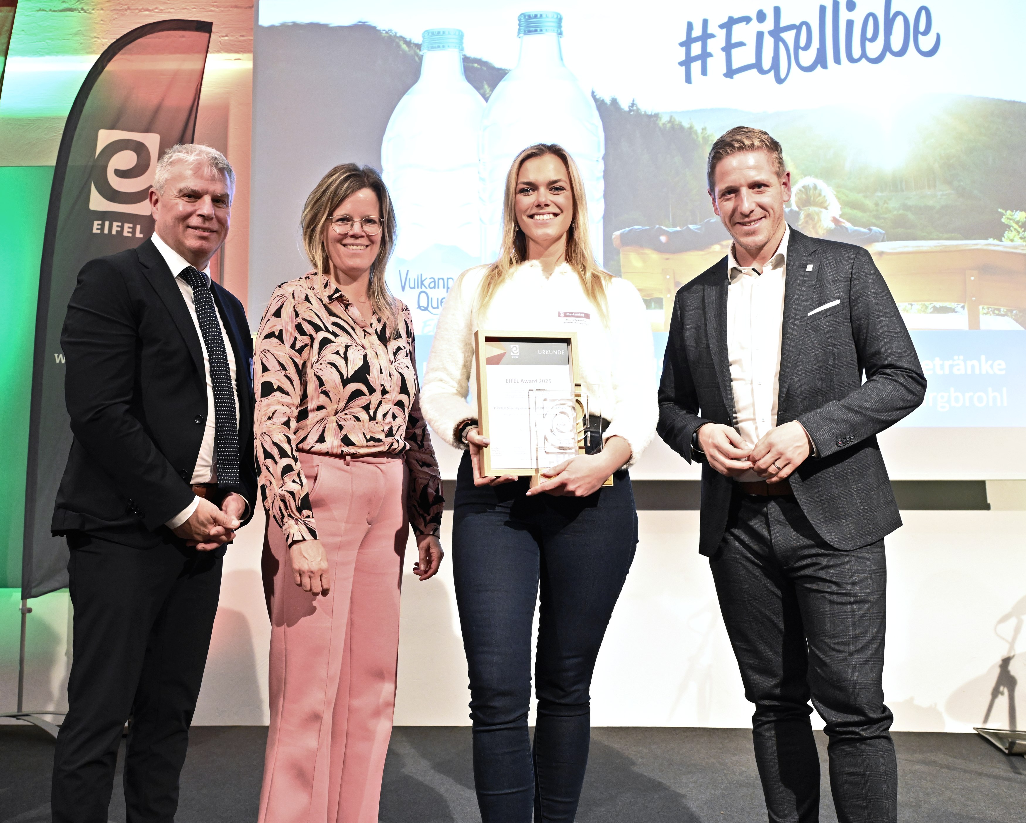 Ein wichtiges Standbein ist die Vulkanpark-Quelle Eifel, die seit langem zur Regionalmarke EIFEL gehört und bewusst in einem regionalen Radius mit dem Claim „die schönste Auszeit aus der Vulkan-Eifel“ vertrieben wird. Die Produktlinie verbindet hochwertige Qualität mit den Werten Genuss, Sinnlichkeit und Durchatmen… passend zum Eifelerlebnis. Die Premiumpositionierung wird unterstrichen durch Investitionen in Glasgebinde, der Vertrieb erfolgt über den regionalen Einzelhandel. All das passt auch zur strikten Nachhaltigkeitsausrichtung des Unternehmens. Zum einen ist das Wasser – obschon nicht offiziell biozertifiziert – dank eigener und unabhängiger Kontrollen ein absolut reines Naturprodukt. Zum anderen gibt es eine fest etablierte und ständig per Audit überprüfte Strategie, von der Produktion bis zum Vertrieb in allen Schritten CO²-Einsparungen vorzunehmen bis hin zur Klimaneutralität, die unter anderem durch kluge Kompensationsmaßnahmen erreicht wird. So arbeitet RHODIUS zu hundert Prozent mit Ökostrom, ein neues Logistikzentrum wird mit Photovoltaik versorgt und ist sogar klimapositiv. „Wir verbrauchen so wenig Ressourcen wie irgend möglich“, sagt Marketing-Mitarbeiterin Alina Borowski.