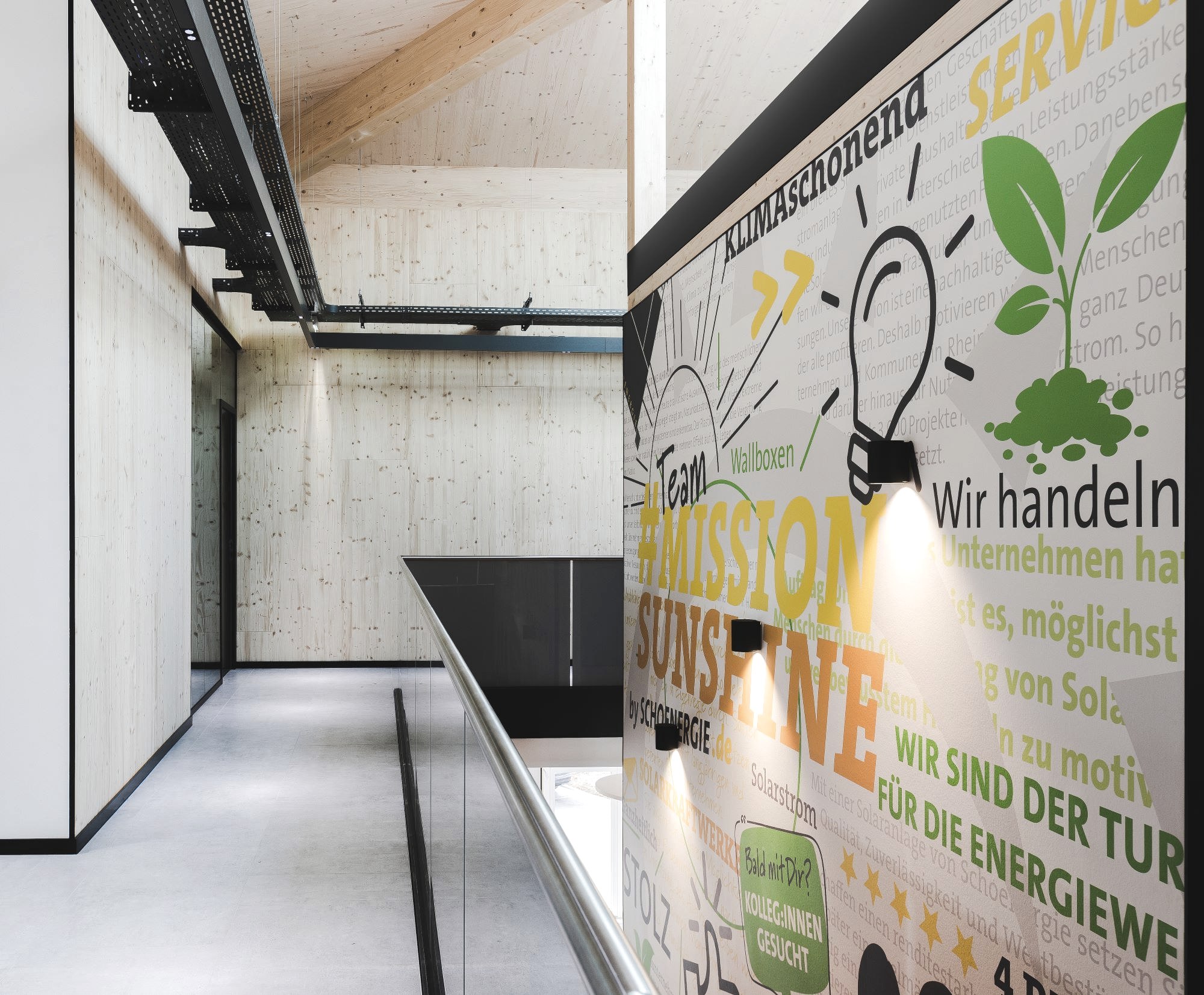 Der Umstieg von Fossilen zu Erneuerbaren ist für Schoenergie nicht nur ein interessantes und wachsendes Geschäftsmodell. Es ist eine Mission, der man sich mit voller Kraft im gesamten Unternehmen widmet. Diese Motivation steckt bereits in der Familien-DNA: „Wir haben einen grundökologischen Ansatz in der Familie“, so Volker Schöller. Solarstrom für alle – das ist die große Zukunftsbild. Um dies zu ermöglichen, setzt sich Schoenergie für klimaneutrale und umweltschonende Energieerzeugung für alle Abnehmergruppen ein: Gemeinden, Unternehmen und Privatleute. An den sechs Standorten sitzen Expertenteams, die individuell beraten, die Lage vor Ort mittels 3D-Modellen prüfen und passgenaue Lösungen realisieren. Wer den neuen, repräsentativen Hauptsitz in Föhren betritt spürt sofort: Hier wird am neuen Energie-Zeitalter geforscht, geplant und gearbeitet.