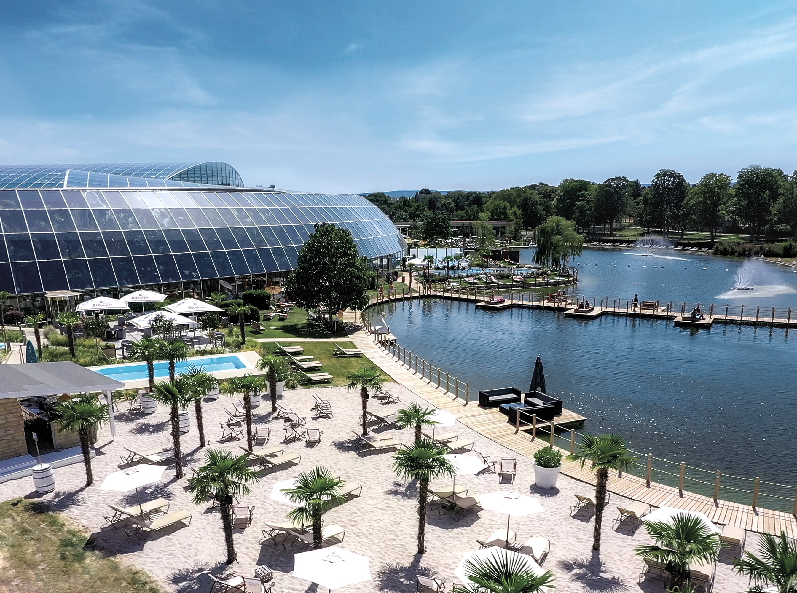 Im Dezember 2015 war die große Eröffnung. Seitdem hat sich die Therme Euskirchen fest bei Wellnessfans etabliert. Einen Tag zwischen Palmen entspannen, ein paar Runden in der Großen Lagune im kristallklaren Wasser drehen, es sich in den Gesundheitsbecken gut gehen lassen oder in der Saunawelt Kraft tanken – Für Entspannung ist gesorgt. „Ein Besuch bei uns ist wie ein Tag Urlaub“, sagt Melinda Atzori, Marketingleitung der Therme Euskirchen. Um Südseeflair zu erleben, muss niemand in den Flieger steigen, dafür ist im Palmenparadies gesorgt: Mehr als 500 echte Palmen machen die Therme zu einer Wohlfühloase.