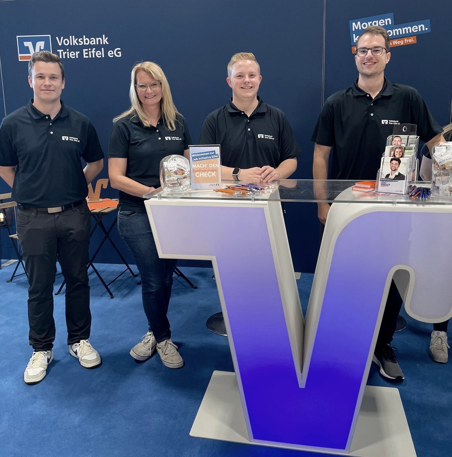 Dieser Zusammenhalt spielt eine große Rolle, gerade weil das Gebiet der Volksbank Trier Eifel eG weiträumig ist und von Hermeskeil bis Stadtkyll, von Hetzerath bis Wincheringen reicht. Wer will, wird wohnortnah eingesetzt, aber natürlich gibt es auch auf Wunsch die Möglichkeit, sich lokal zu verändern. Die Nachwuchskräfte erhalten während ihrer profunden Ausbildung einen „Rundum-Einblick“ ins genossenschaftliche Bankwesen und können ihre eigenen beruflichen Interessenschwerpunkte entwickeln. Abwechslungsreichtum ist im Berufsleben garantiert… zusätzlich zu den handfesten Benefits ein überzeugendes Plus.