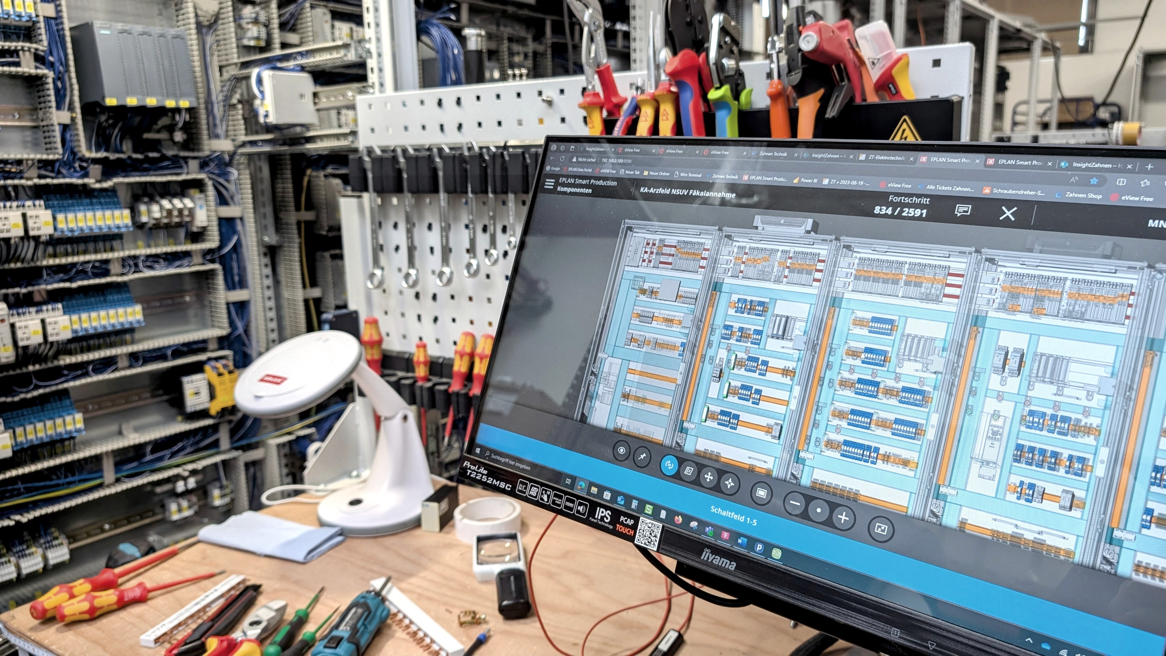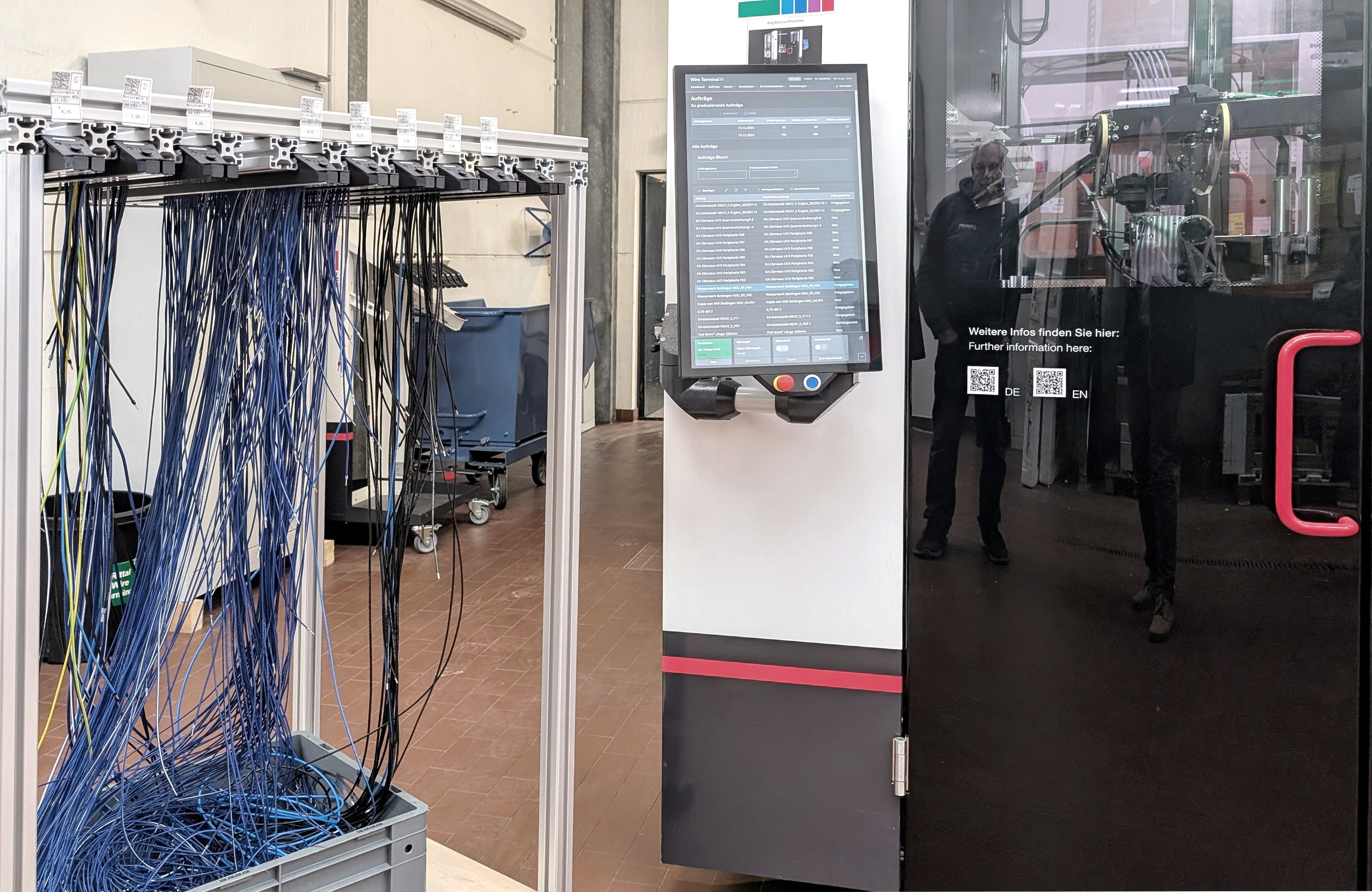 Das Unternehmen mit Sitz in der deutsch-luxemburgischen Grenzregion ist auf stetigem Wachstumskurs, weil die Wasser- und Digitallösungen und Dienstleistungen mittlerweile nicht nur in Deutschland, sondern auch im benachbarten Ausland gefragt sind. „Wie die meisten Betriebe haben auch wir mit dem Fachkräftemangel eine Herausforderung zu bewältigen“, gestehen die Marketing Managerinnen. Die zahlreichen digitalen Tools helfen, um mit weniger Fachpersonal den steigenden Output zu gewährleisten. So hilft ein 3D-Scanner, die räumlichen Gegebenheiten der späteren Anlagen in kürzester Zeit zu erfassen und digital abzubilden – eine Aufgabe, die früher manuell erfolgte und viel Zeit in Anspruch nahm. Stolz ist man auch auf den vollautomatischen Kabelkonfektionierer. Dieser erhält aus den Konstruktionsdaten die Informationen über die Kabel, die in einer Vielzahl unterschiedlicher Längen und Querschnitten benötigt werden. Diese werden automatisch auf Länge gebracht, abisoliert, mit Aderendhülsen versehen und einzeln beschriftet. In der späteren Verarbeitungsreihenfolge hängen diese in einer Kassette für die manuelle Verdrahtung in den Schaltschränken. Auch bei dem nun folgenden Arbeitsschritt ist keine Elektro-Fachkraft mehr notwendig: „Eine angelernte Fachkraft, welche über einen digitalen Montageplan Schritt für Schritt angeleitet wird, kann hunderte von Einzelteilen – Kabel, Klemmen, Schalter und Komponenten – montieren. Zudem können über Videoanimationen weitere Montagedetails über das Display abgerufen werden.“