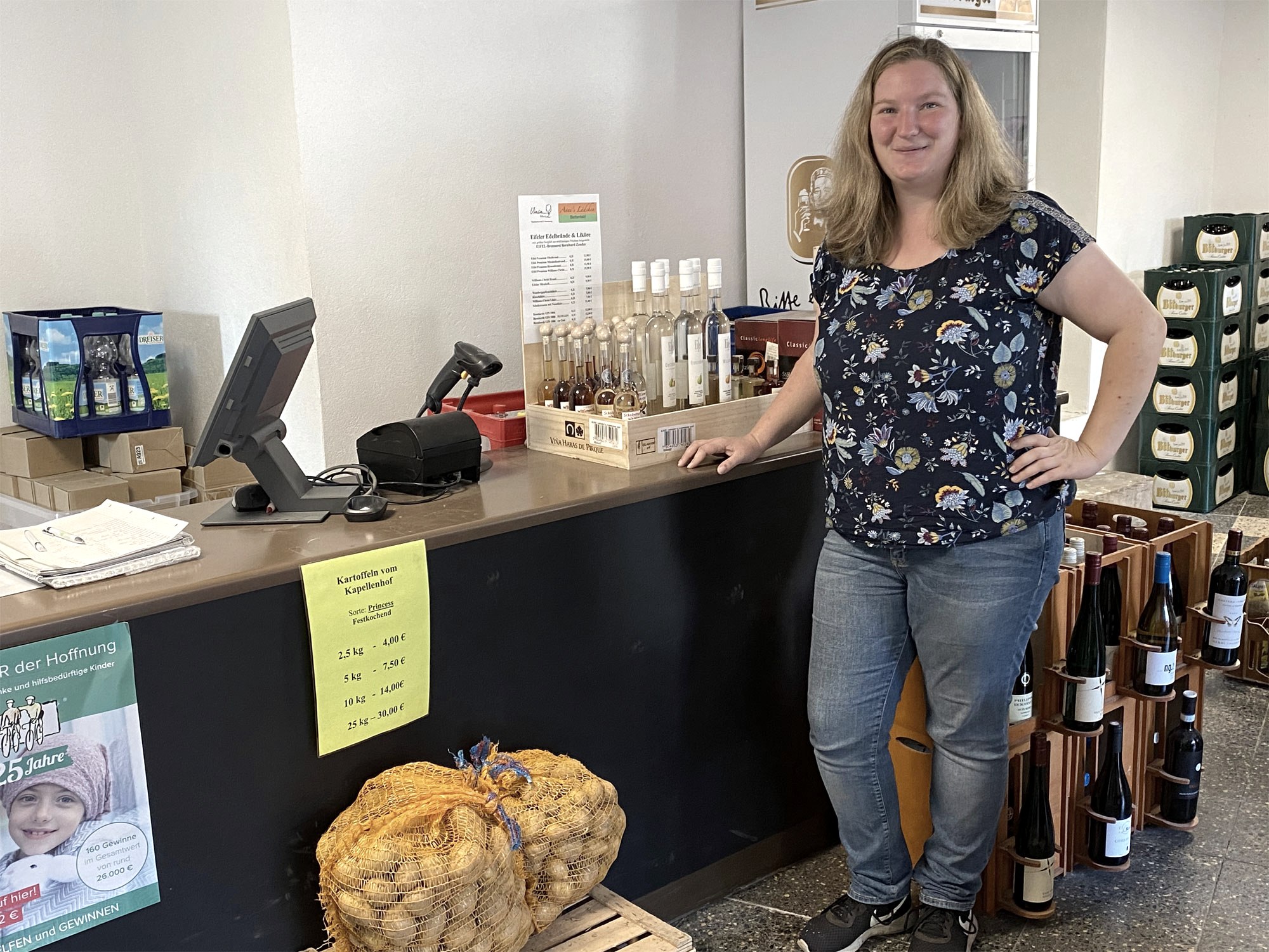 Noch ist in dem kleinen Laden, der Anfang April 2020 mitten in die Corona-Pandemie hinein eröffnete, nicht alles perfektioniert. Die Krise bremste die Komplettierung des Sortiments aus, auf einige Dinge müssen die Kunden von „Anni’s Lädchen“ noch warten. Aber bereits jetzt ist klar, wohin die Reise geht: Das von Anne-Marie Hoffmann geführte Geschäft ist Anlaufstelle für Einheimische wie für Touristen, die Erfrischendes, Leckeres, Deftiges oder Schönes wollen. Es gibt Eier, Nudeln, Geflügel, Wurstwaren, Getränke aller Art vom Eifel-Premium-Brand bis zum Sprudel, besondere Eisspezialitäten und Honig oder auch handgefertigte Taschen, Tassen, Postkarten oder Kalender mit Eifelmotiven. Die vollständige Grundversorgung an Non-Food-Artikeln und frische Backwaren werden spätestens zum Winteranfang dazukommen.