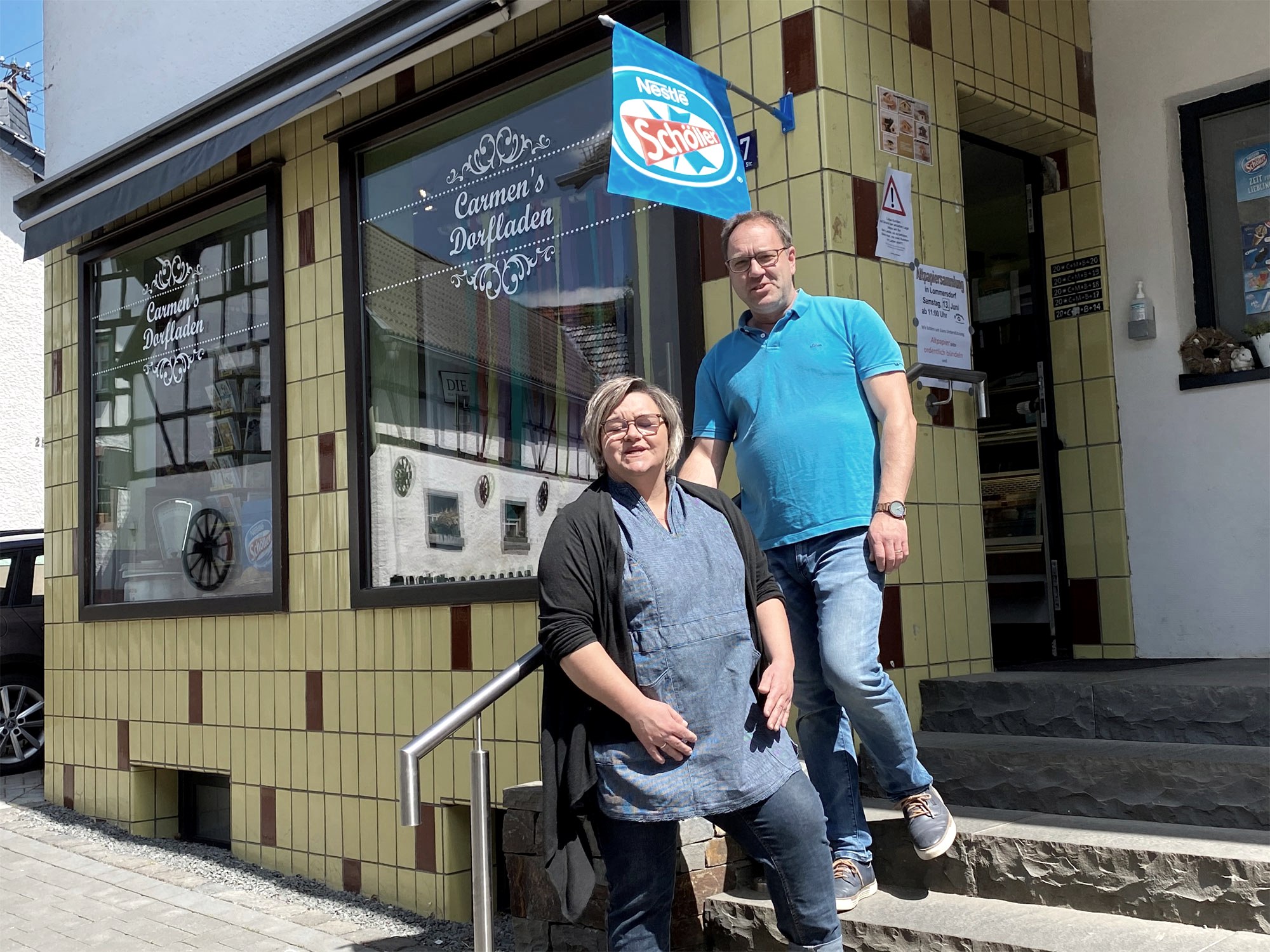 Praktischerweise gibt es in Carmens Dorfladen auch Zeitungen, Grußkarten, eine Paketstation und ein EC-Cashgerät, so dass man für alle Eventualitäten gut gerüstet ist. „Die nächsten Supermärkte sind ziemlich weit entfernt“, schildert sie die Lage in der Hocheifel zwischen Euskirchen und Hillesheim, „darum ist es für die Menschen hier wichtig, sich unkompliziert mit dem Nötigsten an Lebensmitteln eindecken zu können.“ Und was nicht im Laden vorhanden ist, kann gern besorgt werden.