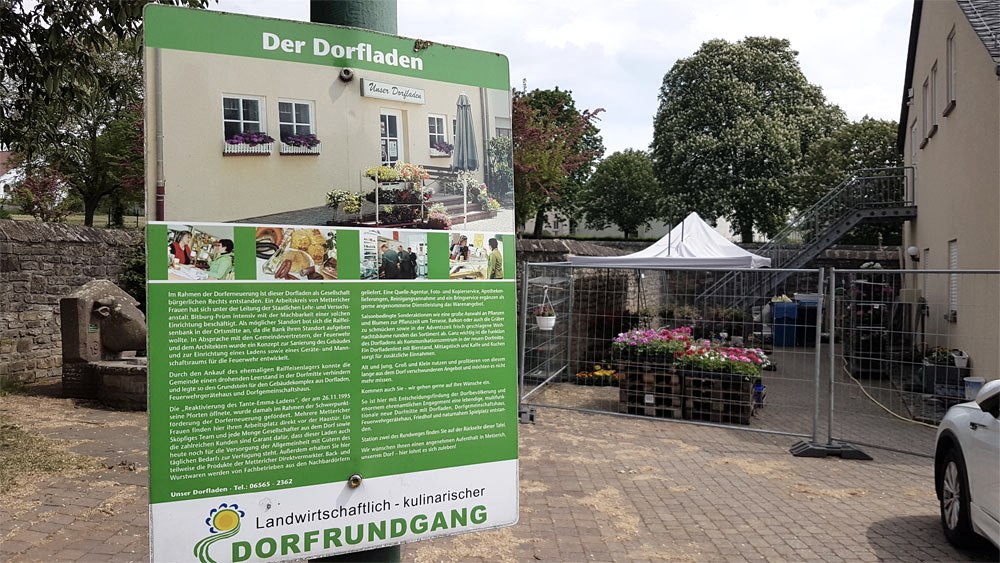 Stolz ist man auf das breite Angebot an regionalen Produkten örtlicher Direktvermarkter wie Geflügelhof, Schnapsbrenner, Bäcker oder Metzger, die zum Teil täglich frische Ware liefern. Schließlich hat der Dorfladen an 7 Tagen die Woche geöffnet. Bei Sonderaktionen wie dem Blumenverkauf im Frühjahr und vor Allerheiligen, beim Weihnachtsbaumverkauf oder dem Adventsbasar erhalten die fünf angestellten Mini-Jobberinnen auch tatkräftige Unterstützung von Leuten des Dorfes. Durch dieses gemeinschaftliche Engagement schaffen es die Betreiber, den Laden seit nunmehr 25 Jahren erfolgreich zu betreiben. „Unser Ziel ist es, trotz der geringen Margen im Lebensmittelhandel am Ende des Jahres eine schwarze Null zu erwirtschaften“, so Carmen Jutz. Ob jung oder alt – in Metterich ist man stolz auf den eigenen Dorfladen. Und so sind sich vor Ort alle sicher, dass trotz der Nähe zum Mittelzentrum Bitburg der Laden als Kommunikationspunkt auch in Zukunft ein wichtiger Baustein des Dorflebens bleiben wird.