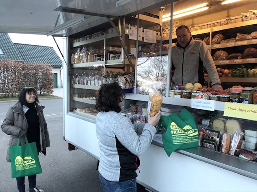 Gleich mehrere kleine mobile Supermärkte steuern die Dörfer und Städte der Eifel an, um die Menschen vor Ort mit Lebensmitteln aller Art zu versorgen, von Frischware über Konserven bis zu Eis und Getränken. Ein Großteil der Produkte stammt von Eifeler Erzeugern und punktet mit besonderer Frische und Ressourcenschutz.
