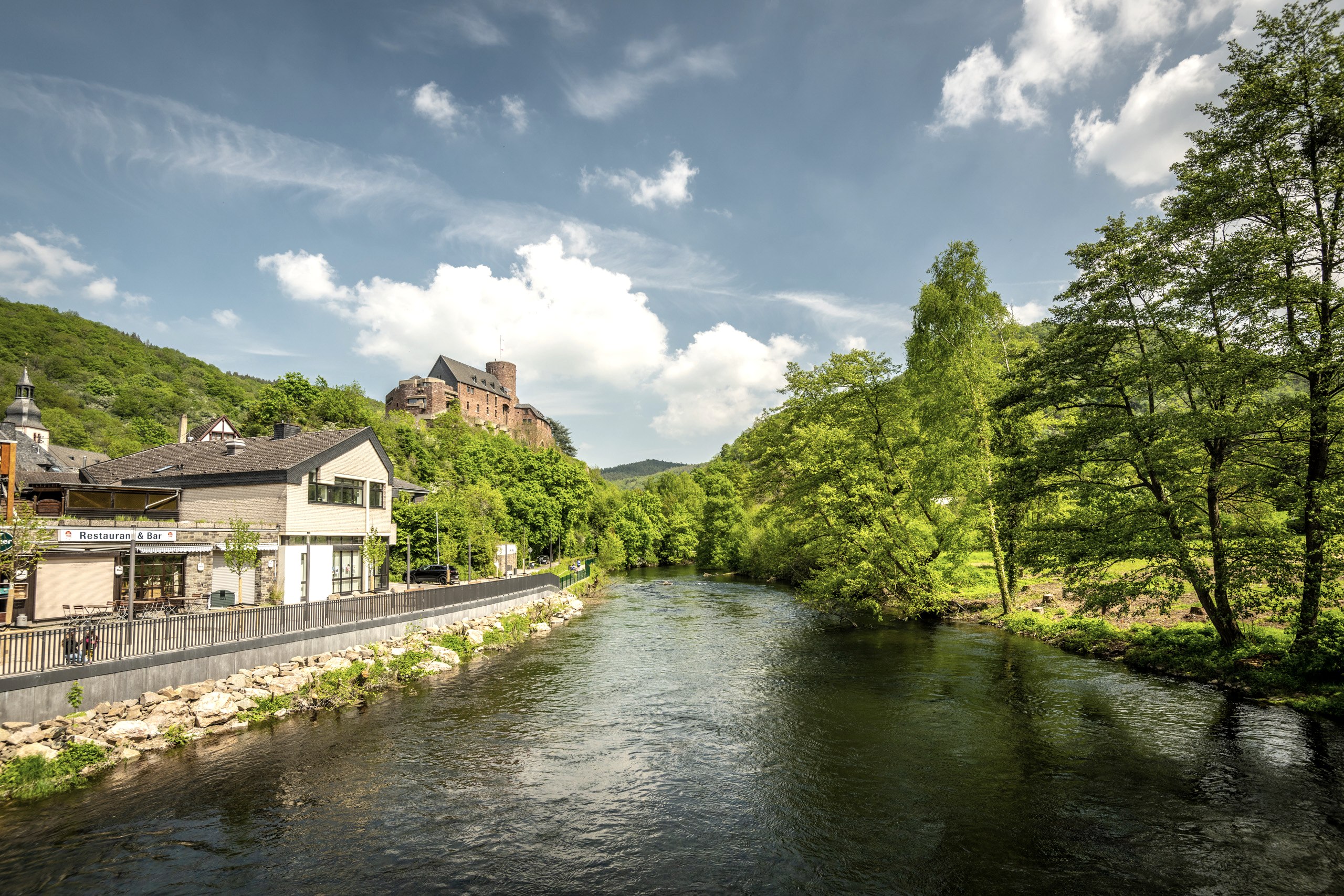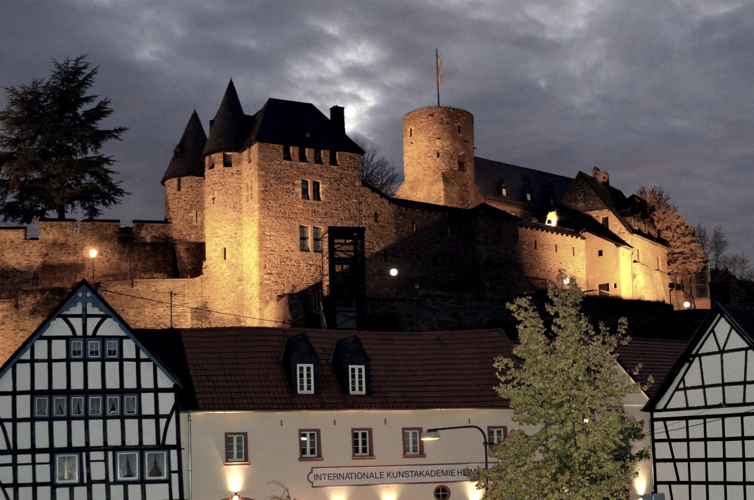 In punkto Sortimentsfülle und Shoppingtrends kann es Heimbach in der Nähe der Rurtalsperre nicht mit der großen Kreisstadt Düren aufnehmen. Muss es aber auch gar nicht, um vor allem an Wochenenden viele Besucher anzulocken. Die Lage macht’s, denn Heimbach ist einer jener Orte, die mit einem eigenen Nationalpark-Tor – hier angesiedelt im ausgezeichneten „Wander-Bahnhof“ des Landes NRW – die Liebhaber von Eifelnatur magisch anziehen. Gepflegte Gastronomie gibt es in den Gassen des uralten Städtchens, um Trekking und Flanieren mit Leckerem zu verbinden… und anderes, was eine Reise wert ist. Da sind zum Beispiel die renommierten Kunstevents wie etwa Werkschauen, die im beeindruckenden Buntsandsteinrot der Burg Hengebach stattfinden. In den Räumen der Internationalen Kunstakademie werden Talente aus ganz Europa künstlerisch ausgebildet.