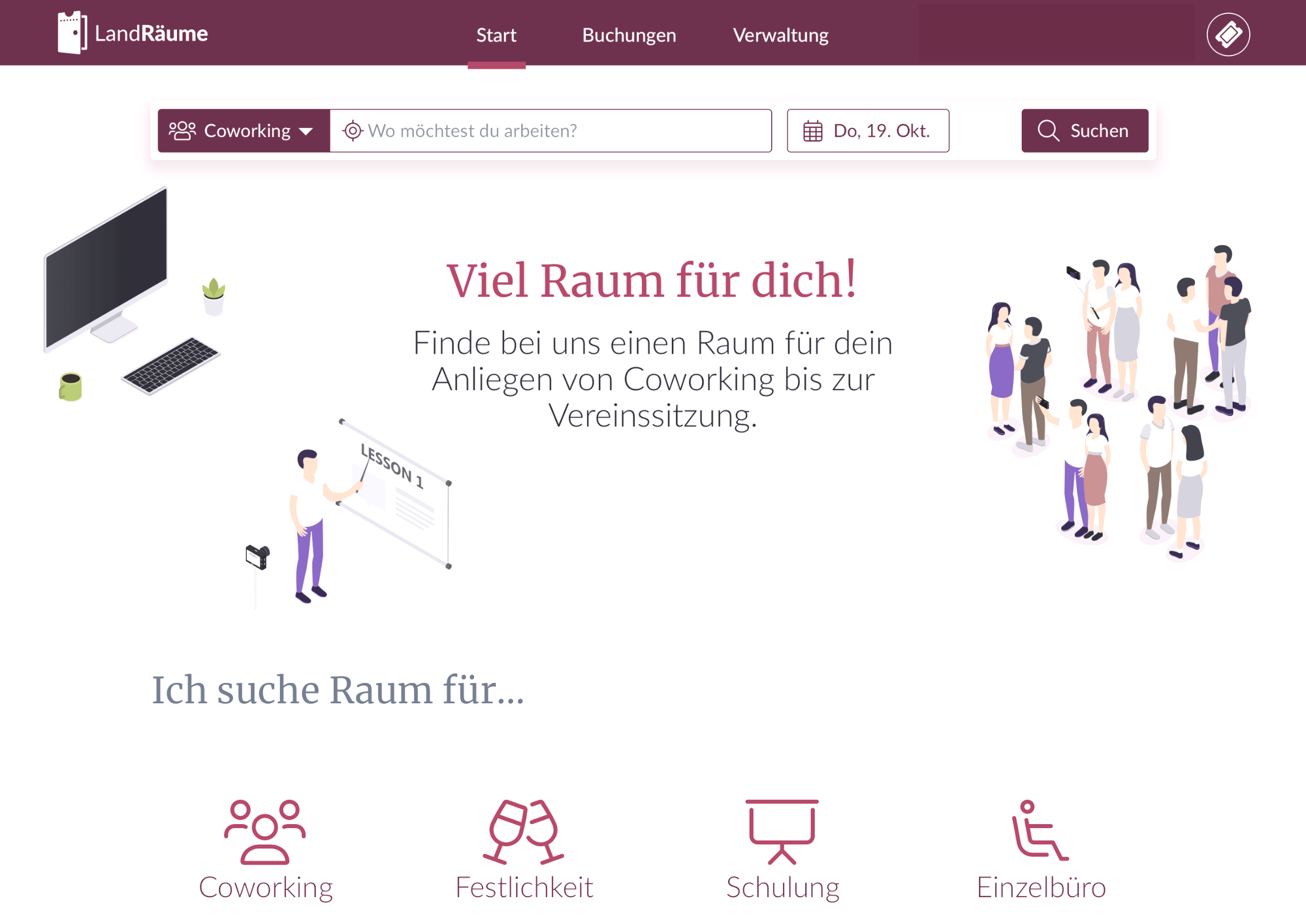 Gemeinsam mit dem Landkreis Coesfeld und dem Fraunhofer-Institut für Experimentelles Software Engineering IESE wurde eine Buchungsplattform mit dem Namen LandRäume ins Leben gerufen. Über die Website www.landraeume.digital sollen in Zukunft unterschiedliche Räume für Coworking, Schulungen oder Festlichkeiten im Landkreis Bernkastel-Wittlich gefunden und digital gebucht werden können. Freie Kapazitäten in Gemeindehäusern oder Coworking-Spaces werden dann dem Nutzer mit wenigen Mausklicks angezeigt.